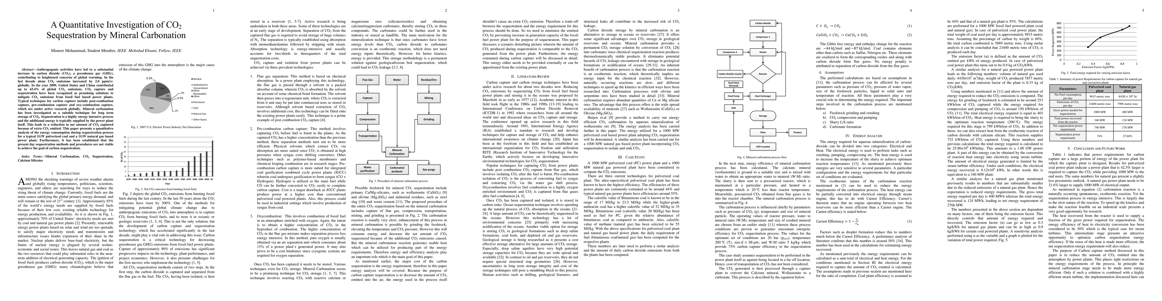 This paper quantitatively analyzes energy consumption in CO2 sequestration via mineral carbonation for 1GW coal and natural gas power plants, finding current methods are not viable due to high energy demands and resultant CO2 emissions.