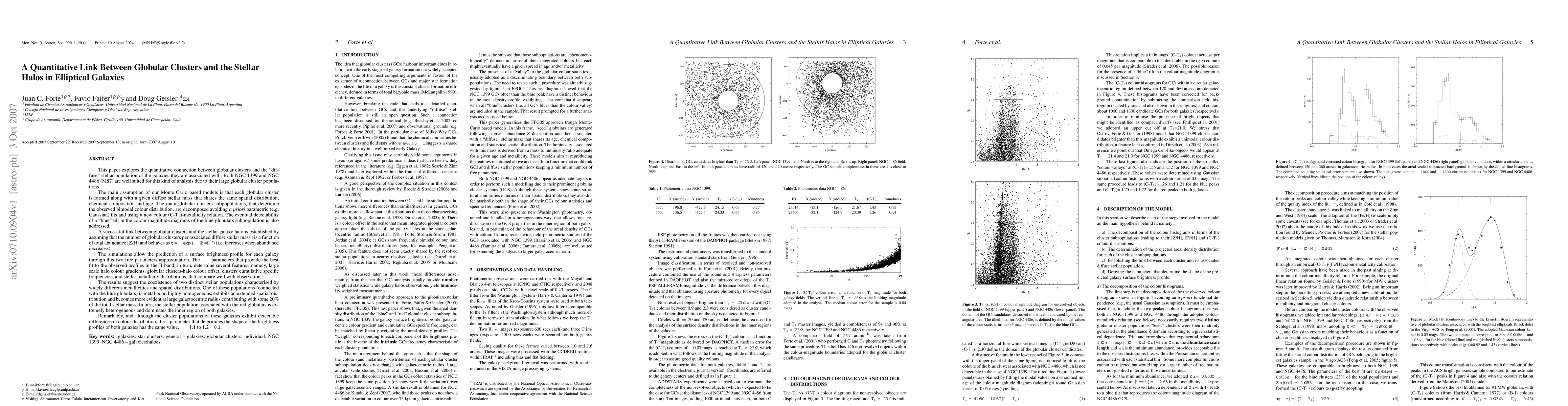 This paper explores the quantitative connection between globular clusters and the diffuse stellar population of the galaxies they are associated with. Both NGC 1399 and NGC 4486 (M87) are well suited for this kind of analysis due to their large globular cluster populations. The main assumption of our Monte Carlo based models is that each globular cluster is formed along with a given diffuse stellar mass that shares the same spatial distribution, chemical composition and age. The main globular clusters subpopulations, that determine the observed bimodal colour distribution, are decomposed avoiding a priori parametric (e.g. Gaussian) fits and using a new colour (C-T1)-metallicity relation. The eventual detectability of a blue tilt in the colour magnitude diagrams of the blue globulars subpopulation is also addressed. A successful link between globular clusters and the stellar galaxy halo is established by assuming that the number of globular clusters per associated diffuse stellar mass t is a function of total abundance [Z/H] and behaves as t=gamma*exp(delta[Z/H]) (i.e. increases when abundance decreases).