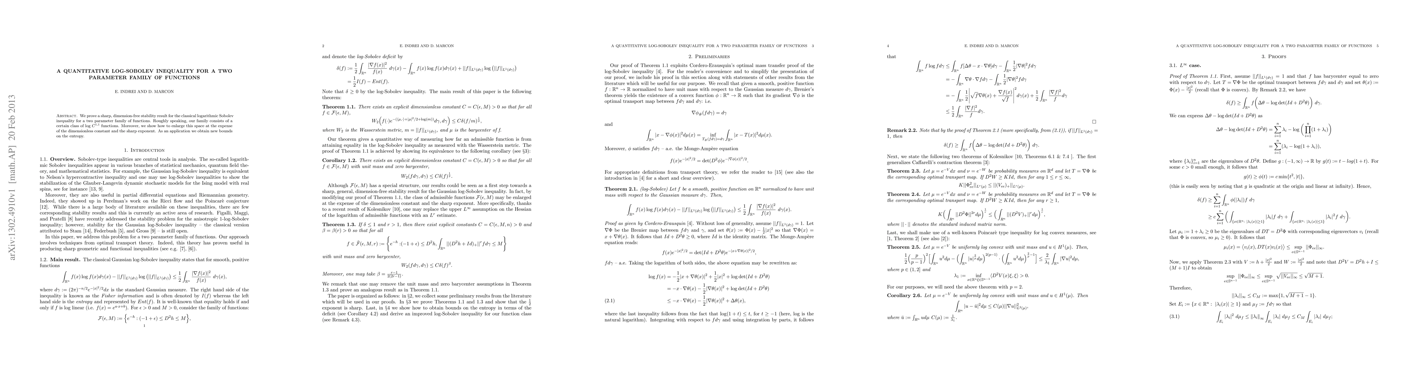 We prove a sharp, dimension-free stability result for the classical logarithmic Sobolev inequality for a two parameter family of functions. Roughly speaking, our family consists of a certain class of log $C^{1,1}$ functions. Moreover, we show how to enlarge this space at the expense of the dimensionless constant and the sharp exponent. As an application we obtain new bounds on the entropy.