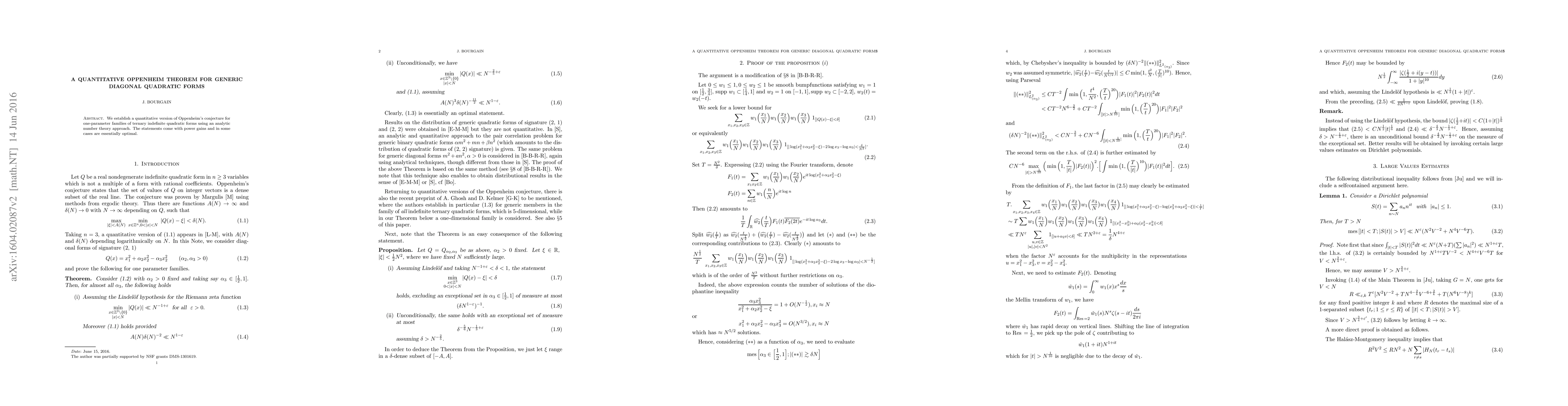 Summary: This paper presents a quantitative Oppenheim Theorem for generic ternary indefinite quadratic forms, achieving power gains through an analytic number theory approach, with results that are often optimal.
