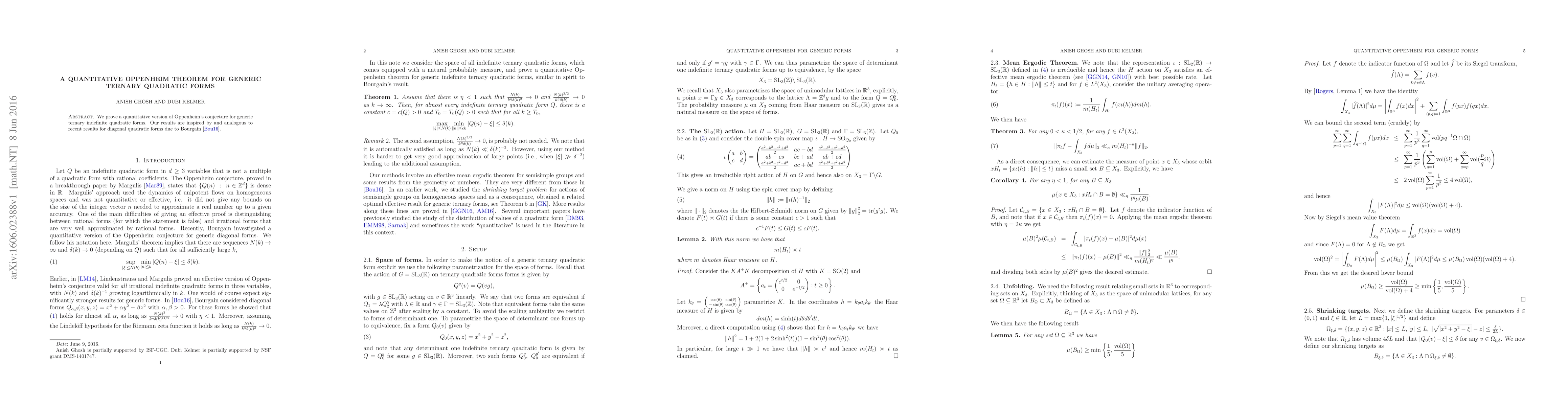 Summary: This paper proves a quantitative version of Oppenheim's conjecture for generic ternary indefinite quadratic forms, inspired by recent advancements in the study of diagonal quadratic forms by Bourgain. The results provide new insights into the distribution of small values of these forms.