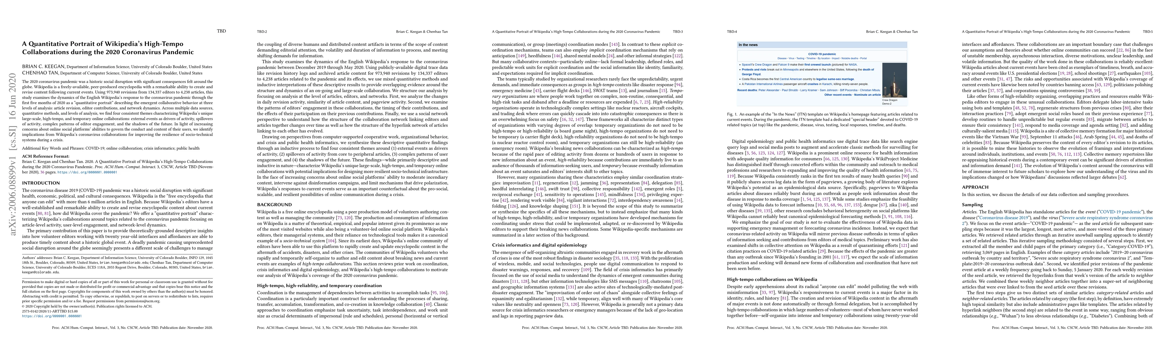 This study quantitatively analyzes the English Wikipedia's rapid collaborative response to the 2020 coronavirus pandemic, revealing four key themes: driven activity by external events, spillover effects, complex editor engagement, and future implications. The findings highlight Wikipedia's resilience and offer insights for enhancing socio-technical systems' governance during crises.