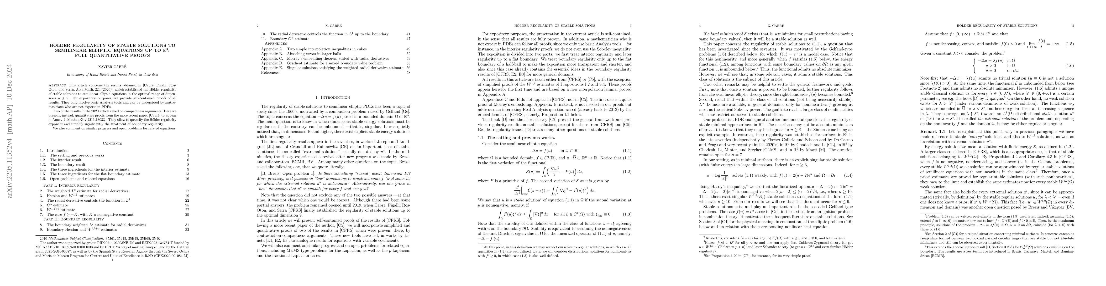 This paper provides quantitative proofs for the H\"older regularity of stable solutions to semilinear elliptic equations, offering new estimates that control the solution in $L^1$ by the $L^1$ norm of its radial derivative, and avoiding reliance on compactness arguments.