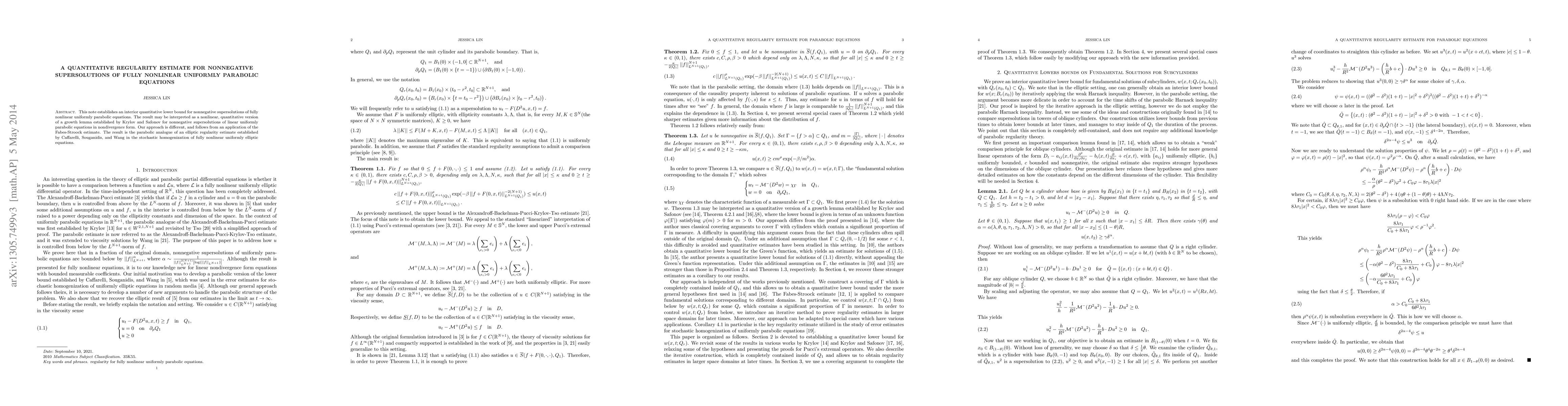This note establishes an interior quantitative lower bound for nonnegative supersolutions of fully nonlinear uniformly parabolic equations. The result may be interpreted as a nonlinear, quantitative version of a growth lemma established by Krylov and Safonov for nonnegative supersolutions of linear uniformly parabolic equations in nondivergence form. Our approach is different, and follows from an application of the Fabes-Stroock estimate. The result is the parabolic analogue of an elliptic regularity estimate established by Caffarelli, Souganidis, and Wang in the stochastic homogenization of fully nonlinear uniformly elliptic equations.