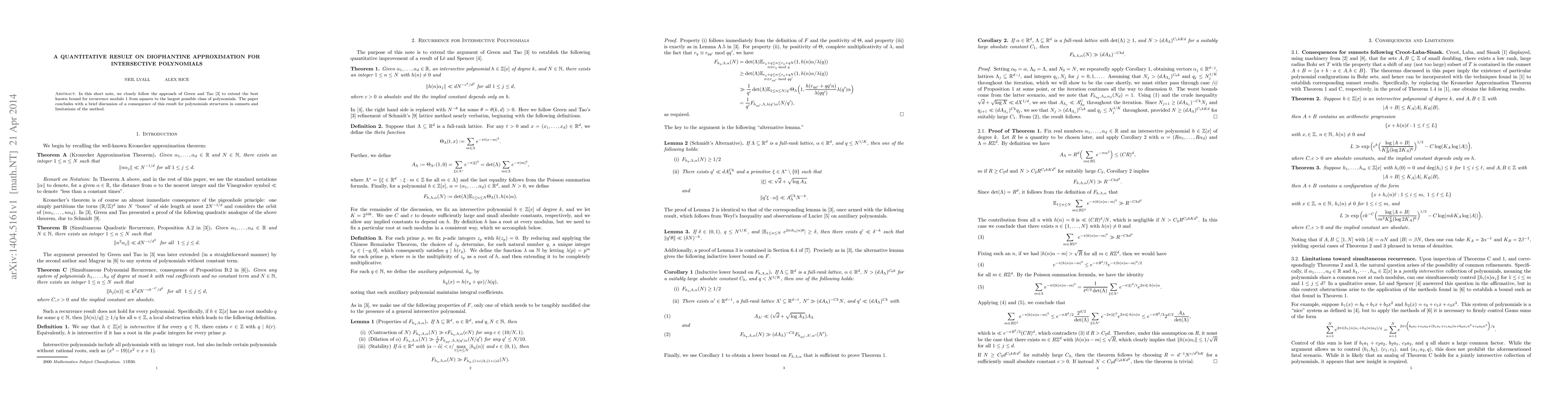 In this short note, we closely follow the approach of Green and Tao to extend the best known bound for recurrence modulo 1 from squares to the largest possible class of polynomials. The paper concludes with a brief discussion of a consequence of this result for polynomials structures in sumsets and limitations of the method.