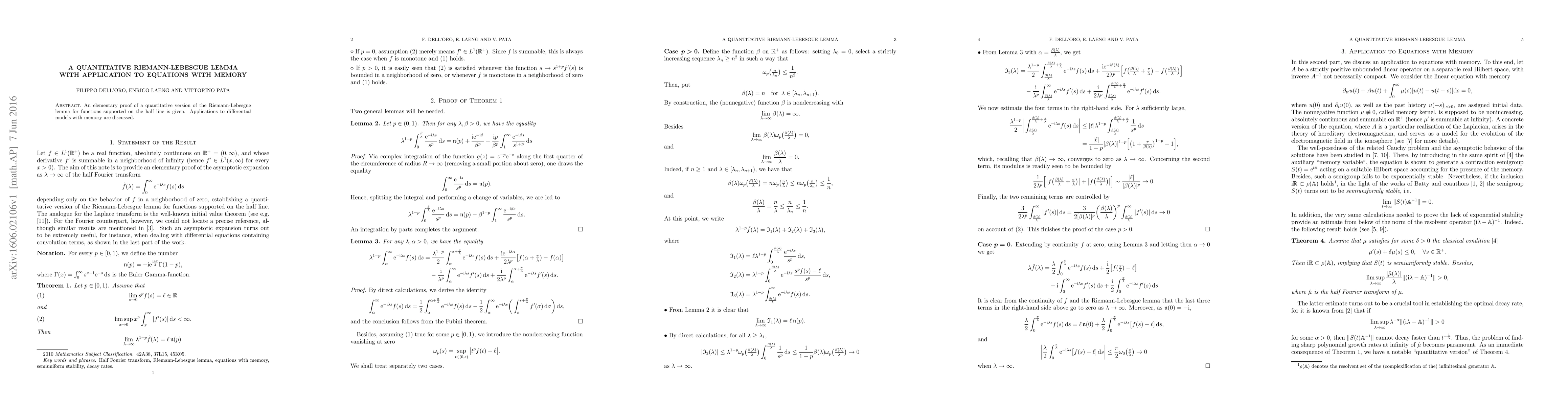 An elementary proof of a quantitative version of the Riemann-Lebesgue lemma for functions supported on the half line is given. Applications to differential models with memory are discussed.