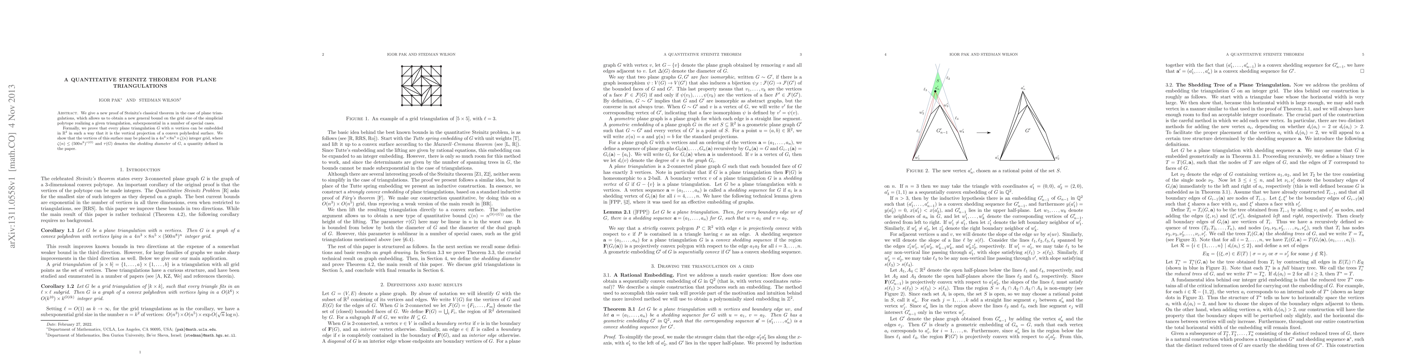 A new proof of Steinitz's theorem for plane triangulations shows that a given triangulation can be embedded in 2D space with its vertices placed in a grid of size $4n^3 imes 8n^5 imes au(G)$, where $ au(G)$ is the shedding diameter of the triangulation.
