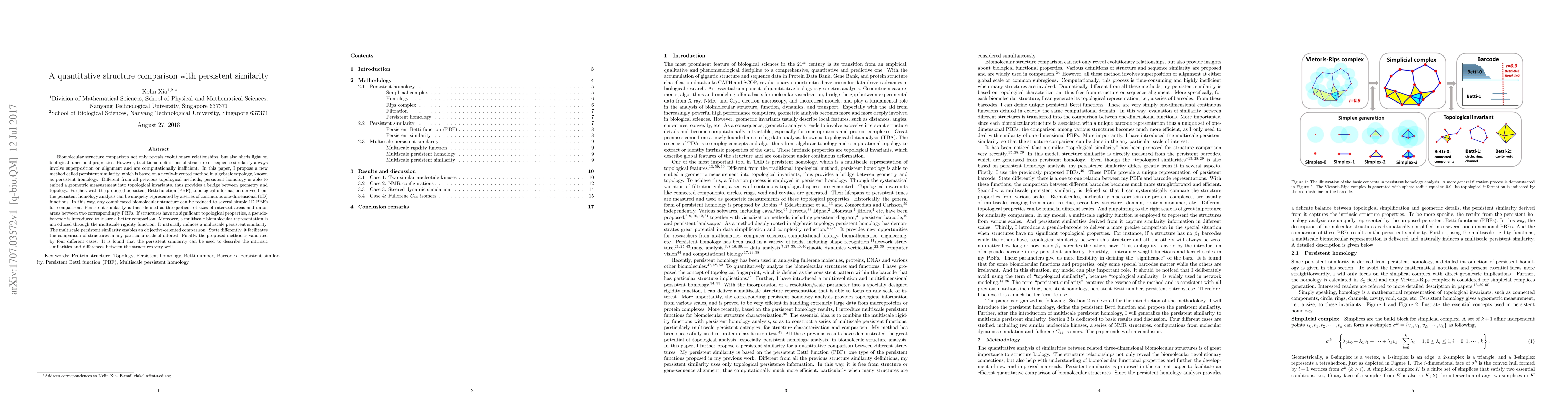This paper introduces persistent similarity, a novel method for comparing biomolecular structures using persistent homology from algebraic topology. It reduces complex structures into 1D persistent Betti functions for efficient comparison, enabling multiscale analysis and objective-oriented comparisons. The method is validated to effectively describe intrinsic similarities and differences between structures.