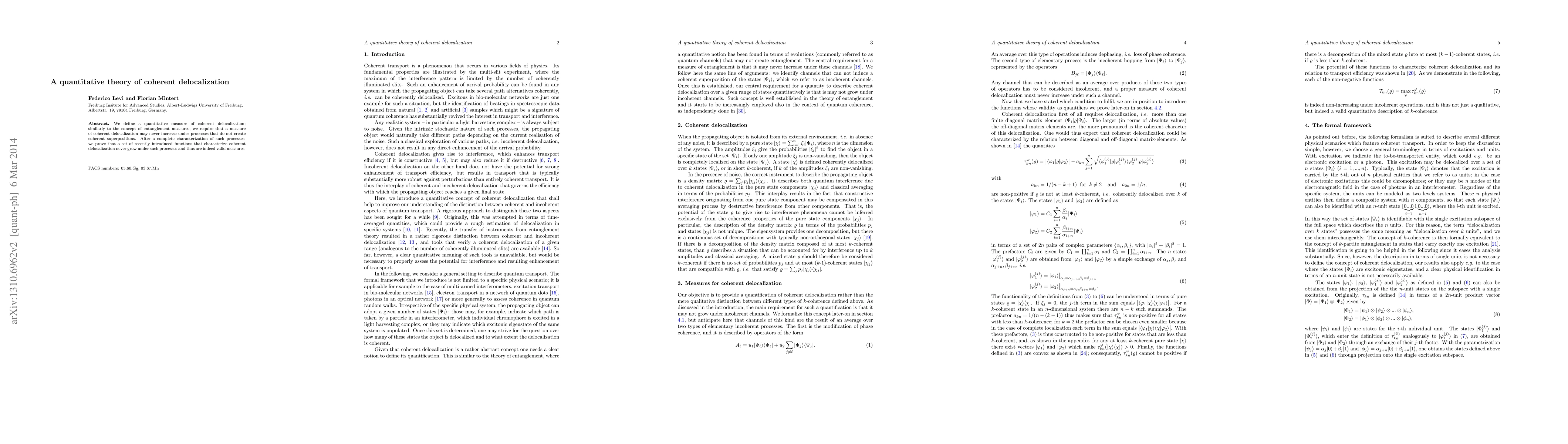 This paper introduces a quantitative measure of coherent delocalization, akin to entanglement measures, and proves that a set of recently proposed functions characterizing coherent delocalization remain constant under processes that do not create coherent superpositions, validating their use as measures.