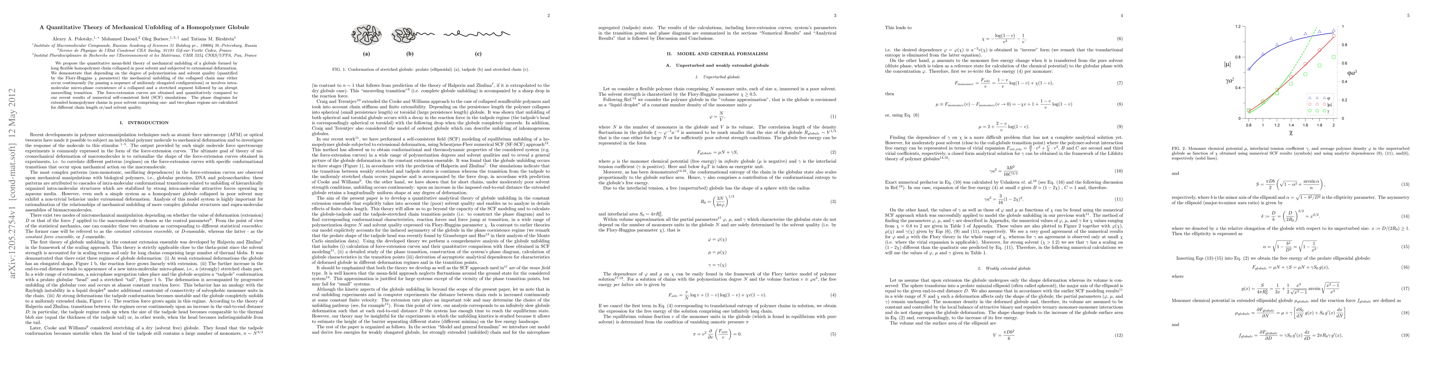 This paper proposes a quantitative mean-field theory of mechanical unfolding of collapsed homopolymer globules in poor solvents, showing that unfolding can be continuous or abrupt, depending on polymer length and solvent quality. The theory's predictions are compared with numerical simulations, and phase diagrams for different chain lengths and solvent conditions are presented.