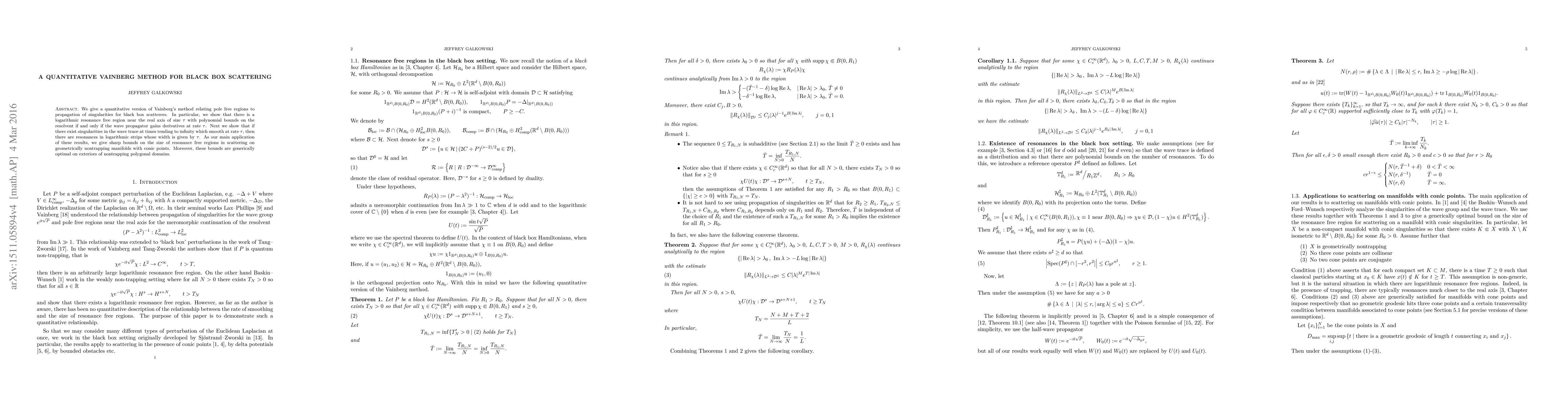 We give a quantitative version of Vainberg's method relating pole free regions to propagation of singularities for black box scatterers. In particular, we show that there is a logarithmic resonance free region near the real axis of size $\tau$ with polynomial bounds on the resolvent if and only if the wave propagator gains derivatives at rate $\tau$. Next we show that if there exist singularities in the wave trace at times tending to infinity which smooth at rate $\tau$, then there are resonances in logarithmic strips whose width is given by $\tau$. As our main application of these results, we give sharp bounds on the size of resonance free regions in scattering on geometrically nontrapping manifolds with conic points. Moreover, these bounds are generically optimal on exteriors of nontrapping polygonal domains.