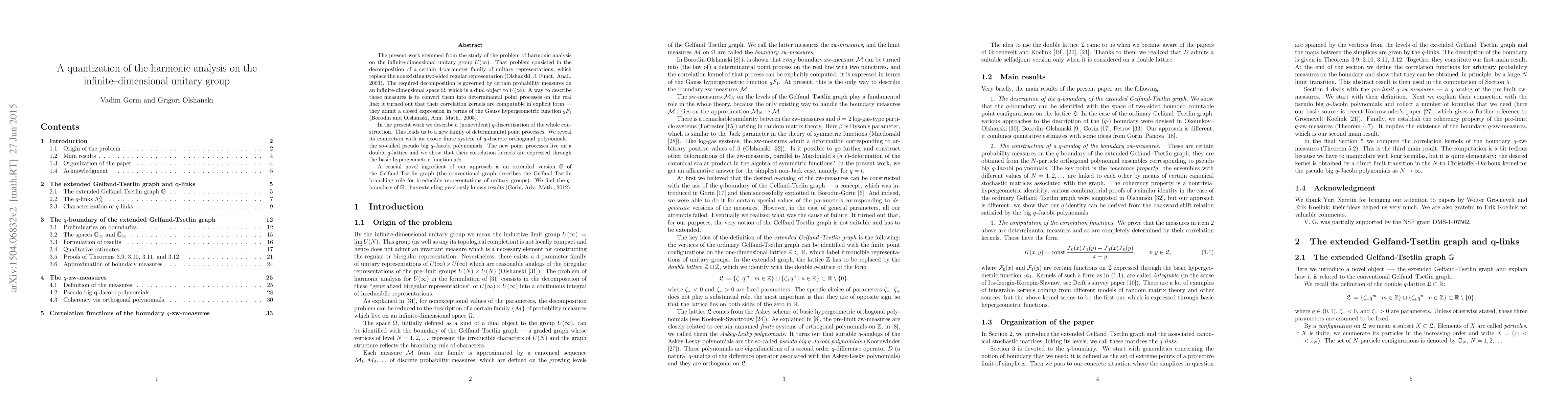 The paper introduces a novel q-discretization method and connects it to an exotic finite system of q-discrete orthogonal polynomials, offering a fresh perspective on harmonic analysis in infinite dimensions.
