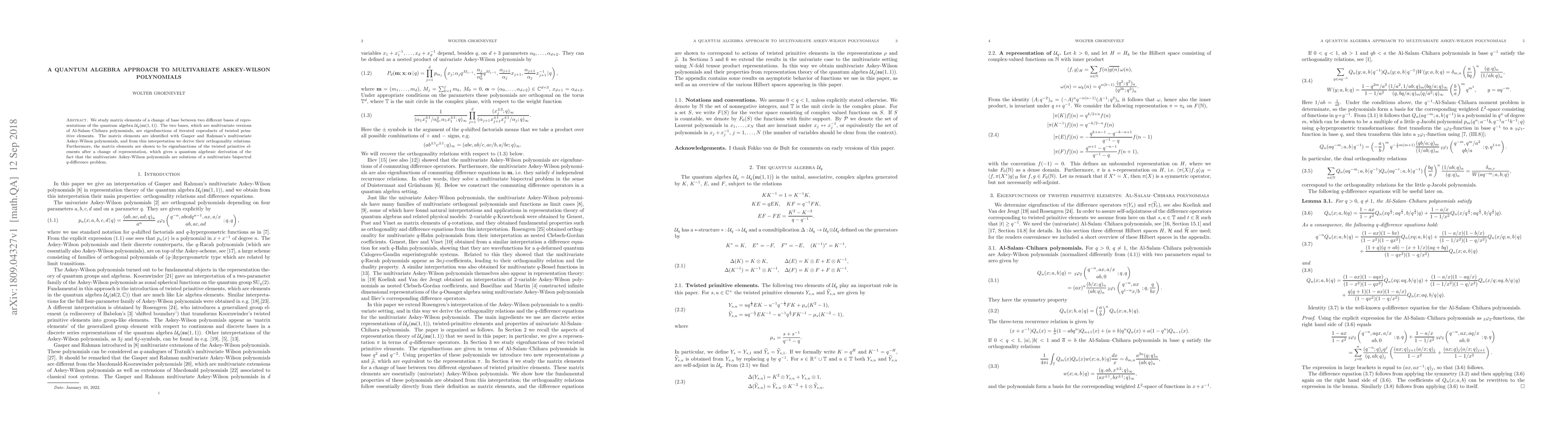 We study matrix elements of a change of base between two different bases of representations of the quantum algebra $U_q(su(1,1))$. The two bases, which are multivariate versions of Al-Salam--Chihara polynomials, are eigenfunctions of iterated coproducts of twisted primitive elements. The matrix elements are identified with Gasper and Rahman's multivariate Askey-Wilson polynomials, and from this interpretation we derive their orthogonality relations. Furthermore, the matrix elements are shown to be eigenfunctions of the twisted primitive elements after a change of representation, which gives a quantum algebraic derivation of the fact that the multivariate Askey-Wilson polynomials are solutions of a multivariate bispectral $q$-difference problem.
