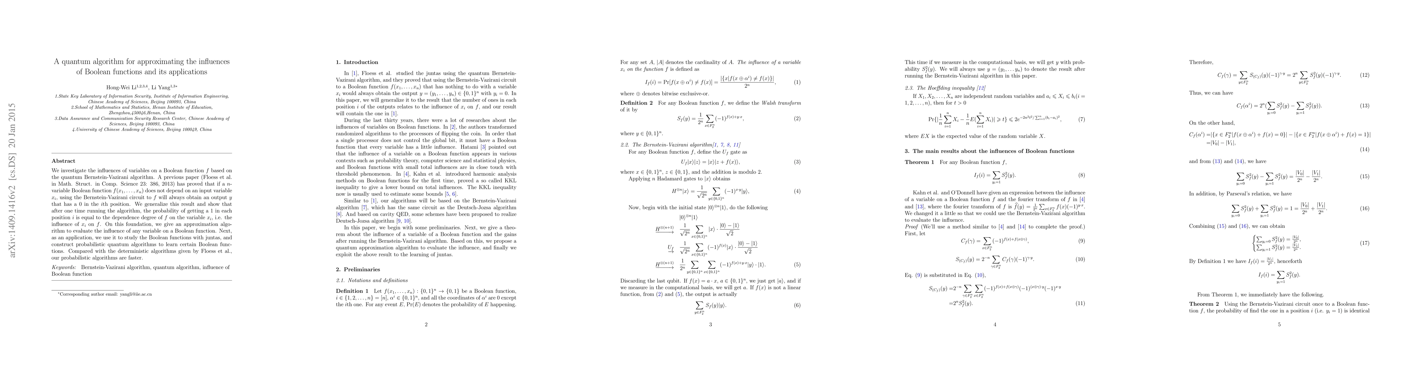 This paper presents a quantum algorithm based on the Bernstein-Vazirani algorithm to approximate the influence of variables on Boolean functions. It generalizes the previous result to show that the probability of obtaining a 1 in each position corresponds to the influence of the respective variable, and then proposes an approximation algorithm for evaluating these influences, which is applied to learn Boolean functions with juntas more efficiently than deterministic methods.