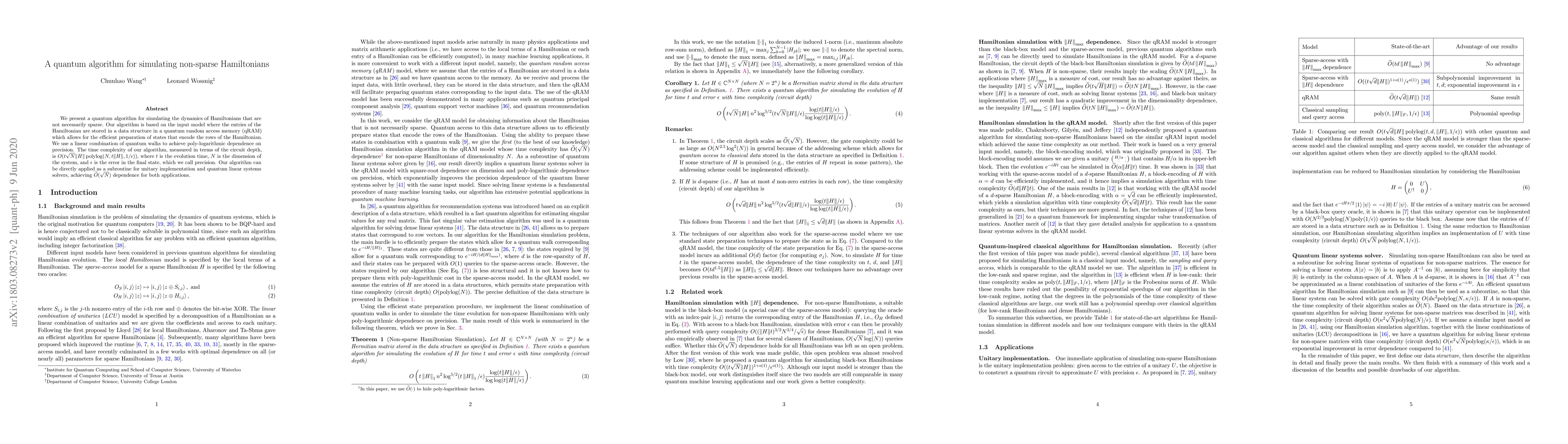 This paper introduces a quantum algorithm for simulating non-sparse Hamiltonian dynamics using a qRAM model, employing a linear combination of quantum walks to achieve poly-logarithmic precision dependence. The algorithm's time complexity is $O(t\sqrt{N}\|H\|\,\mathrm{polylog}(N, t\|H\|, 1/\epsilon))$, offering $\widetilde{O}(\sqrt{N})$ efficiency for unitary implementations and quantum linear systems solvers.
