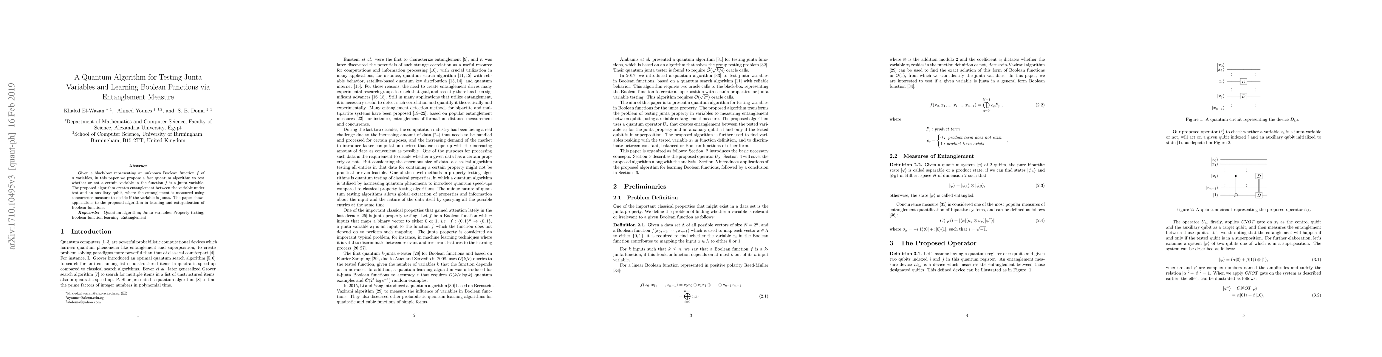 This paper proposes a quantum algorithm to determine if a variable in an unknown Boolean function is a junta variable by creating and measuring entanglement between the variable and an auxiliary qubit using concurrence. The method has applications in learning and categorizing Boolean functions.