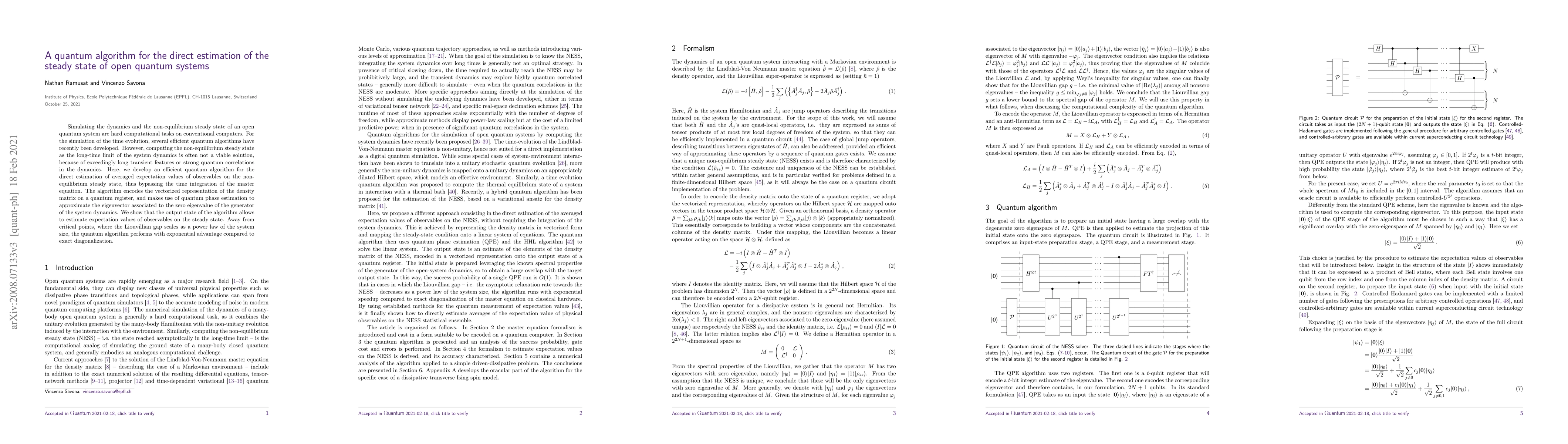 This paper presents a quantum algorithm for directly estimating the non-equilibrium steady state of open quantum systems, bypassing the need for time integration. The algorithm leverages quantum phase estimation to approximate the zero-eigenvector of the system's dynamics generator, providing exponential advantage over classical methods.
