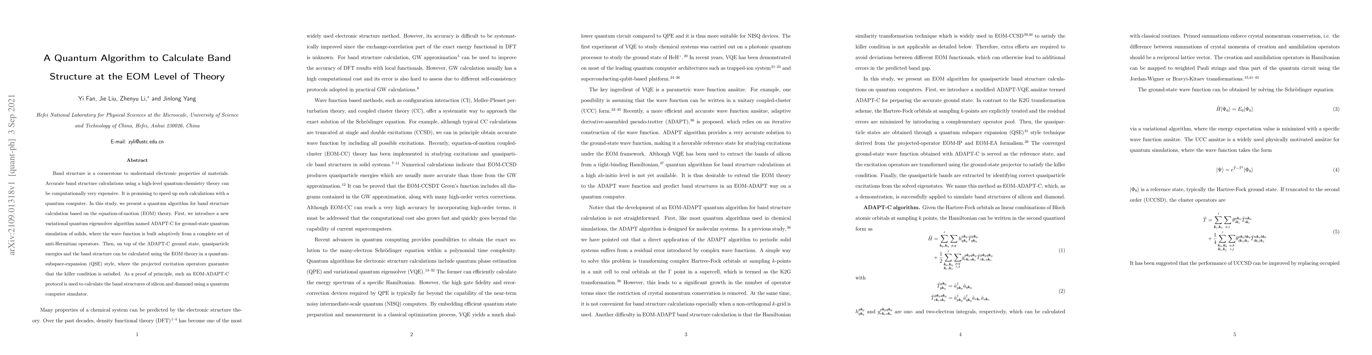 A new quantum algorithm, EOM-ADAPT-C, uses a quantum computer to quickly calculate band structures of materials with high accuracy, promising a breakthrough in understanding electronic properties of materials.