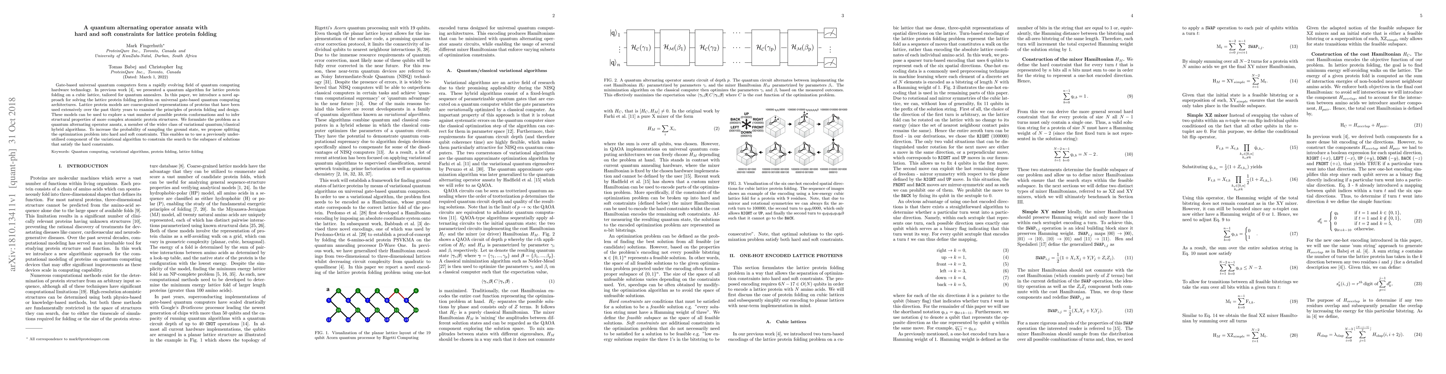 This paper proposes a quantum alternating operator ansatz for solving lattice protein folding problems on universal gate-based quantum computers, introducing hard and soft constraints to improve the probability of sampling the ground state and constrain the search to relevant solution subspaces. This approach aims to explore the principles of protein folding and design using coarse-grained lattice protein models.