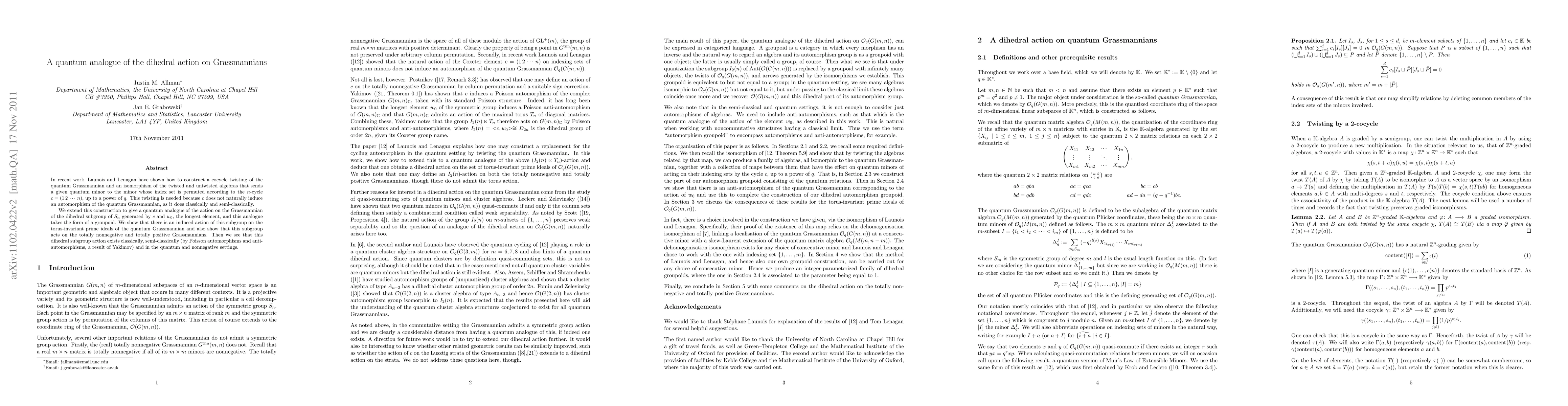 In recent work, Launois and Lenagan have shown how to construct a cocycle twisting of the quantum Grassmannian and an isomorphism of the twisted and untwisted algebras that sends a given quantum minor to the minor whose index set is permuted according to the $n$-cycle $c=(1, 2, ..., n)$, up to a power of $q$. This twisting is needed because $c$ does not naturally induce an automorphism of the quantum Grassmannian, as it does classically and semi-classically. We extend this construction to give a quantum analogue of the action on the Grassmannian of the dihedral subgroup of $S_{n}$ generated by $c$ and $w_{0}$, the longest element, and this analogue takes the form of a groupoid. We show that there is an induced action of this subgroup on the torus-invariant prime ideals of the quantum Grassmannian and also show that this subgroup acts on the totally nonnegative and totally positive Grassmannians. Then we see that this dihedral subgroup action exists classically, semi-classically (by Poisson automorphisms and anti-automorphisms, a result of Yakimov) and in the quantum and nonnegative settings.