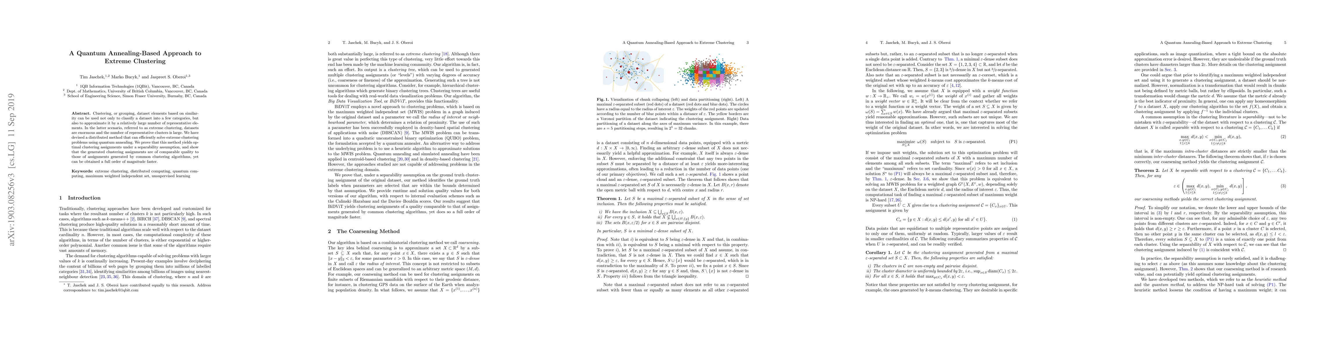 Researchers developed a quantum annealing-based approach to efficiently solve extreme clustering problems, outperforming traditional algorithms in speed while achieving comparable quality results.