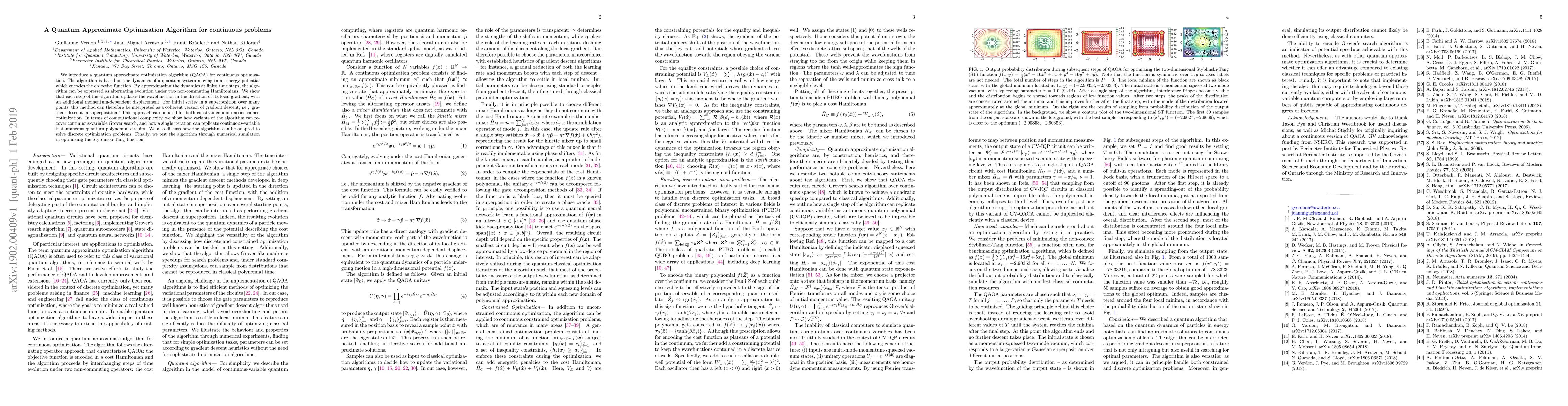 This paper introduces a quantum approximate optimization algorithm (QAOA) for continuous optimization, utilizing quantum dynamics to encode the objective function. The algorithm employs a coherent gradient descent approach in superposition, showing potential for both constrained and unconstrained optimization problems.