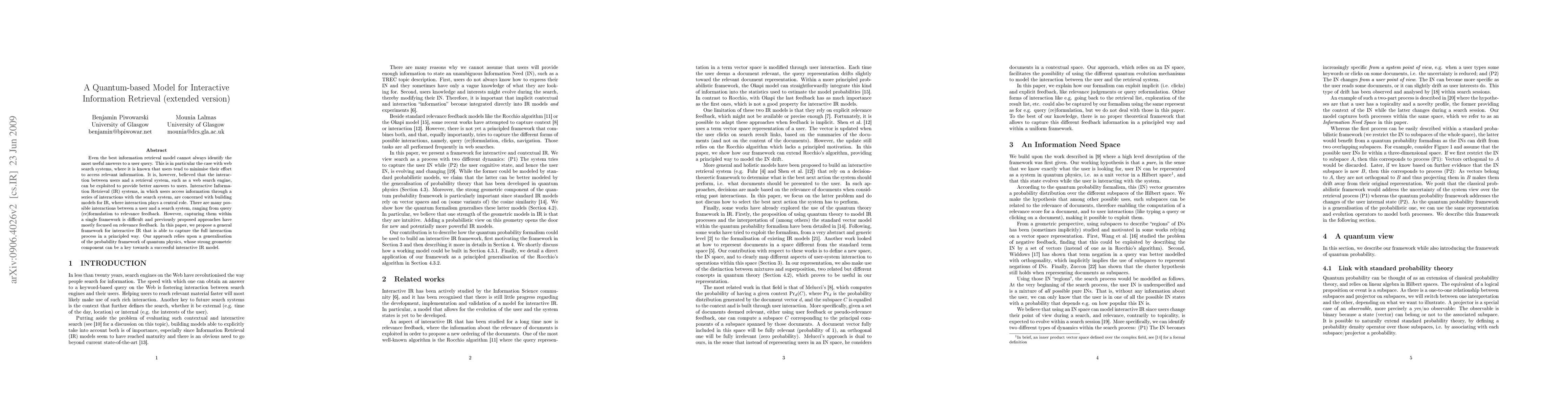 This paper proposes a quantum-based model for Interactive Information Retrieval (IR) that captures the entire interaction process between users and search systems. It leverages a generalized probability framework from quantum physics to enhance the IR model, aiming to provide more relevant answers through user interactions.