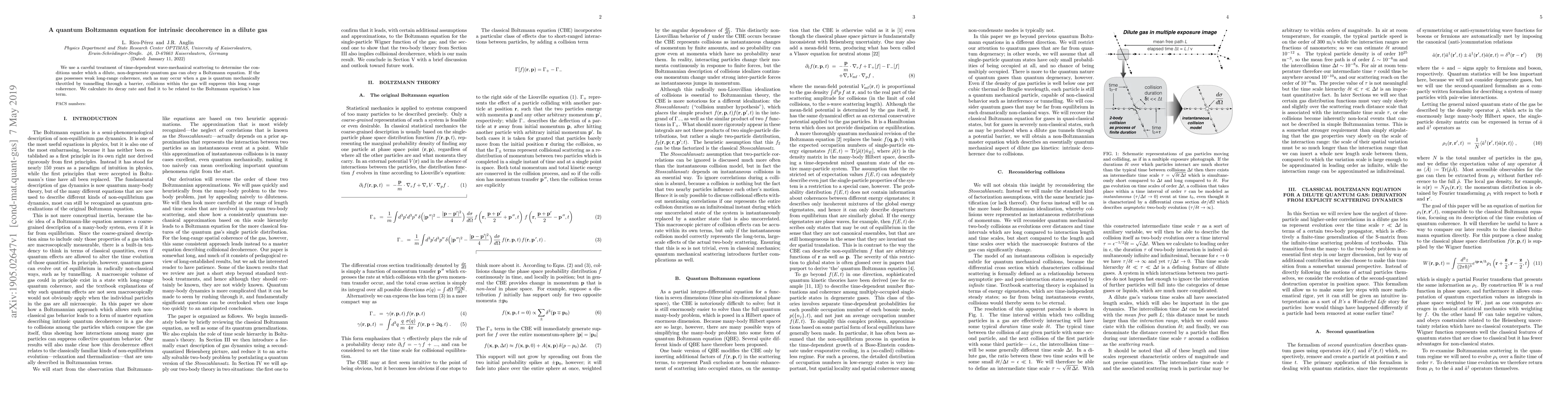 This paper investigates the conditions under which a dilute quantum gas obeys a Boltzmann equation, revealing that collisions suppress long-range coherence and determining the decay rate of this coherence, which correlates with the Boltzmann equation's loss term.