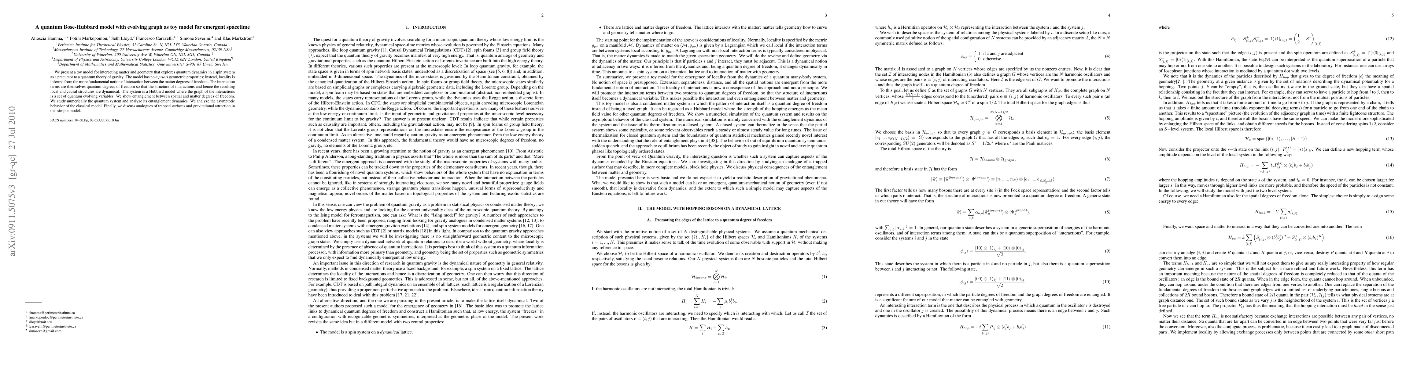 We present a toy model for interacting matter and geometry that explores quantum dynamics in a spin system as a precursor to a quantum theory of gravity. The model has no a priori geometric properties, instead, locality is inferred from the more fundamental notion of interaction between the matter degrees of freedom. The interaction terms are themselves quantum degrees of freedom so that the structure of interactions and hence the resulting local and causal structures are dynamical. The system is a Hubbard model where the graph of the interactions is a set of quantum evolving variables. We show entanglement between spatial and matter degrees of freedom. We study numerically the quantum system and analyze its entanglement dynamics. We analyze the asymptotic behavior of the classical model. Finally, we discuss analogues of trapped surfaces and gravitational attraction in this simple model.