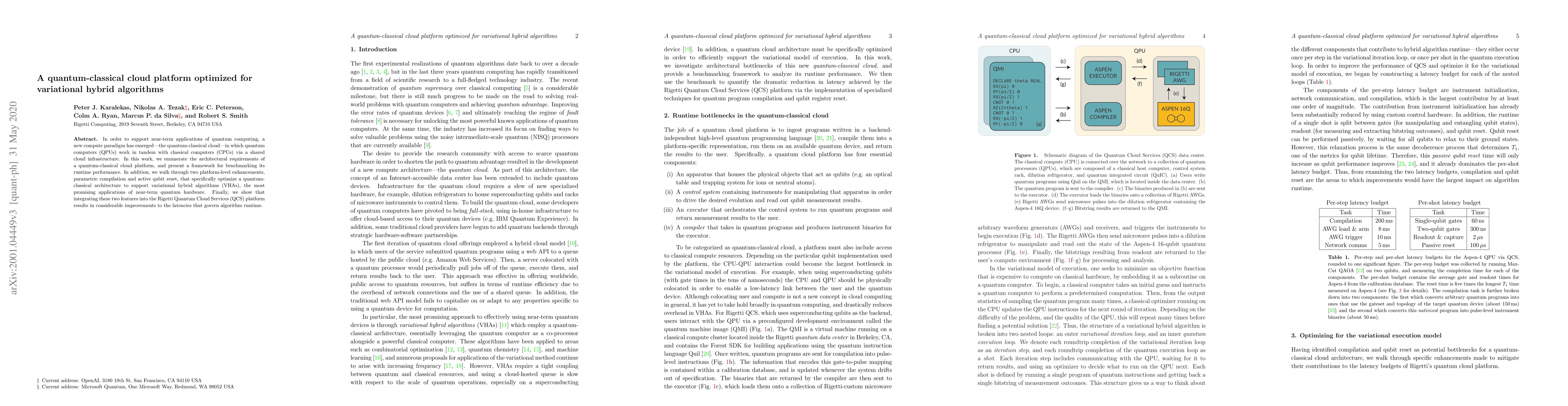 This paper proposes a quantum-classical cloud platform optimized for variational hybrid algorithms, detailing architectural requirements and benchmarking performance. It introduces enhancements like parametric compilation and active qubit reset, demonstrating significant improvements in latencies for the Rigetti Quantum Cloud Services.
