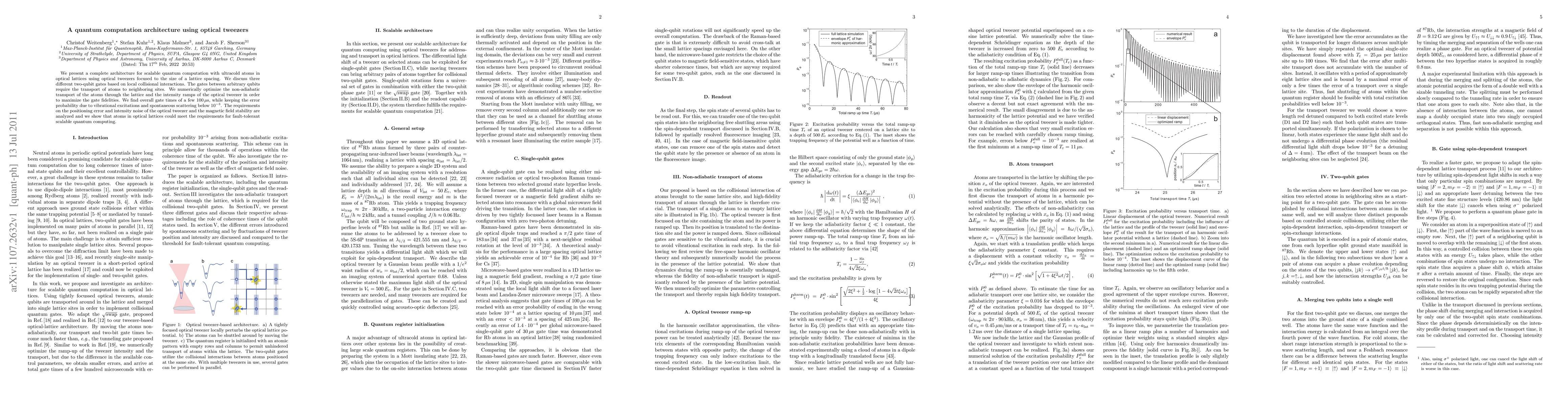 We present a complete architecture for scalable quantum computation with ultracold atoms in optical lattices using optical tweezers focused to the size of a lattice spacing. We discuss three different two-qubit gates based on local collisional interactions. The gates between arbitrary qubits require the transport of atoms to neighboring sites. We numerically optimize the non-adiabatic transport of the atoms through the lattice and the intensity ramps of the optical tweezer in order to maximize the gate fidelities. We find overall gate times of a few 100 us, while keeping the error probability due to vibrational excitations and spontaneous scattering below 10^3. The requirements on the positioning error and intensity noise of the optical tweezer and the magnetic field stability are analyzed and we show that atoms in optical lattices could meet the requirements for fault-tolerant scalable quantum computing.