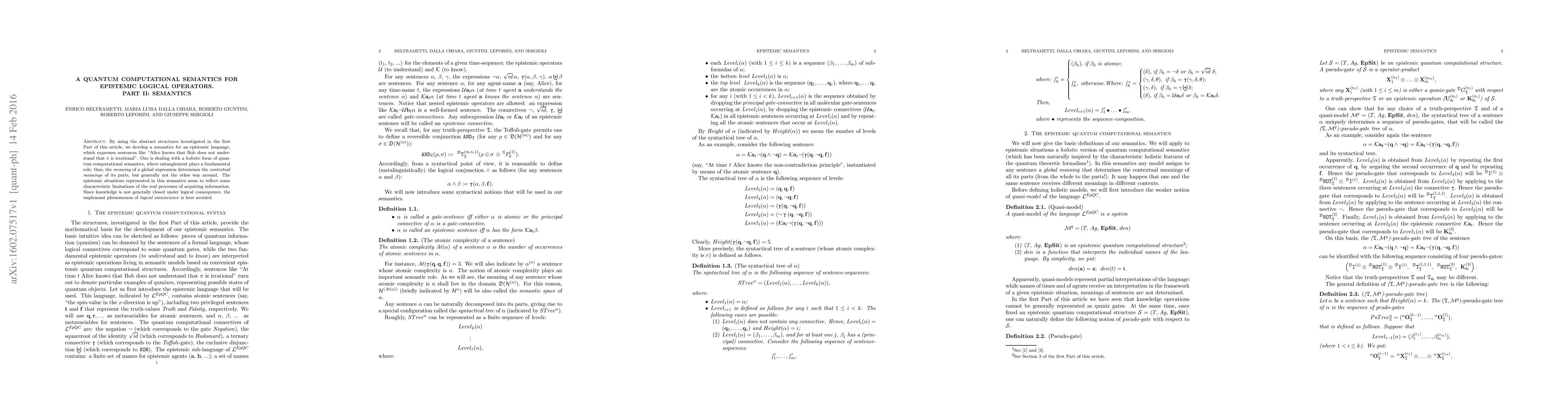 By using the abstract structures investigated in the first Part of this article, we develop a semantics for an epistemic language, which expresses sentences like "Alice knows that Bob does not understand that PI is irrational". One is dealing with a holistic form of quantum computational semantics, where entanglement plays a fundamental role, thus, the meaning of a global expression determines the contextual meanings of its parts, but generally not the other way around. The epistemic situations represented in this semantics seem to reflect some characteristic limitations of the real processes of acquiring information. Since knowledge is not generally closed under logical consequence, the unpleasant phenomenon of logical omniscience is here avoided.