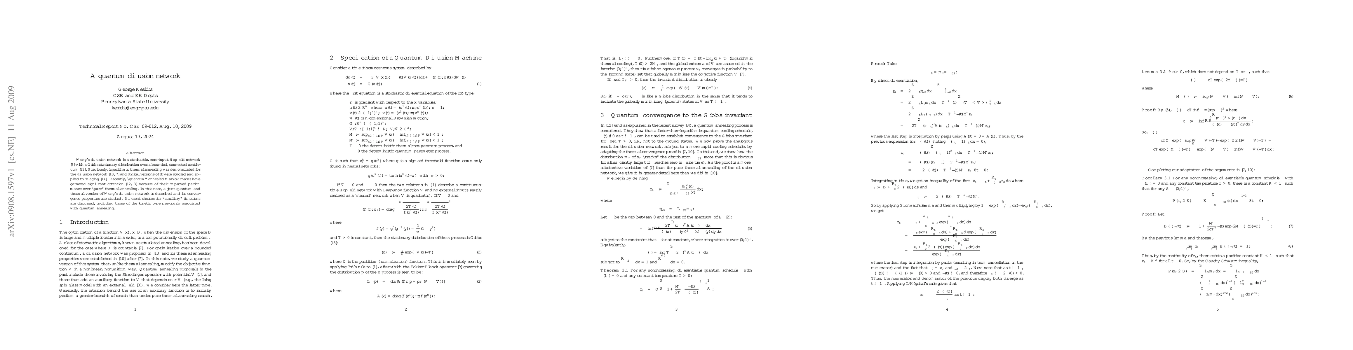 This paper introduces a hybrid quantum-thermal version of Wong's diffusion network, examining its convergence properties and exploring various auxiliary functions, including kinetic types linked to quantum annealing. The study aims to leverage the enhanced performance of quantum annealed Markov chains over traditional thermal annealing.