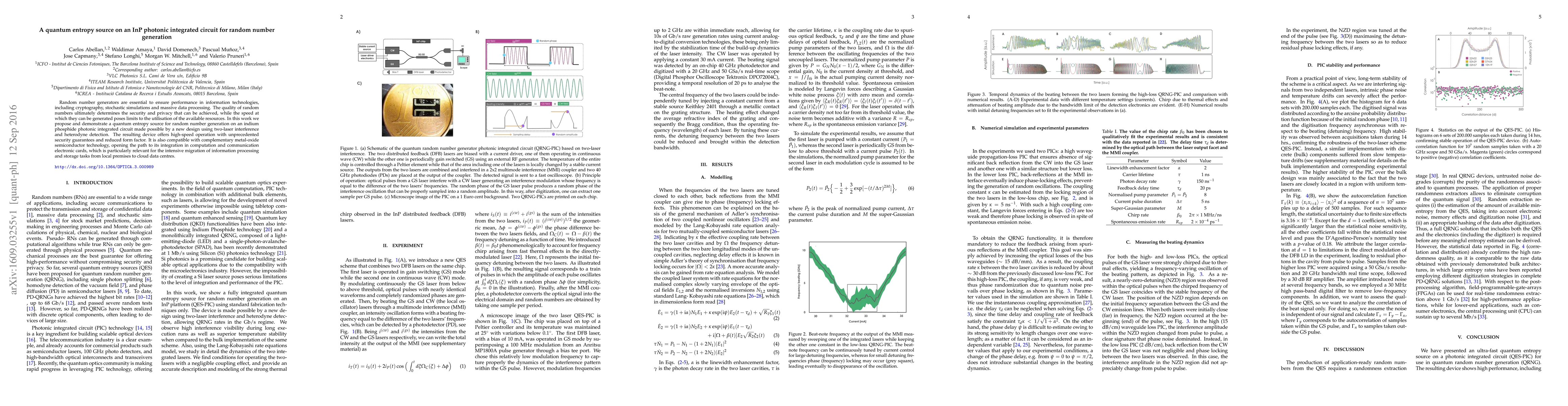 Random number generators are essential to ensure performance in information technologies, including cryptography, stochastic simulations and massive data processing. The quality of random numbers ultimately determines the security and privacy that can be achieved, while the speed at which they can be generated poses limits to the utilisation of the available resources. In this work we propose and demonstrate a quantum entropy source for random number generation on an indium phosphide photonic integrated circuit made possible by a new design using two-laser interference and heterodyne detection. The resulting device offers high-speed operation with unprecedented security guarantees and reduced form factor. It is also compatible with complementary metal-oxide semiconductor technology, opening the path to its integration in computation and communication electronic cards, which is particularly relevant for the intensive migration of information processing and storage tasks from local premises to cloud data centres.