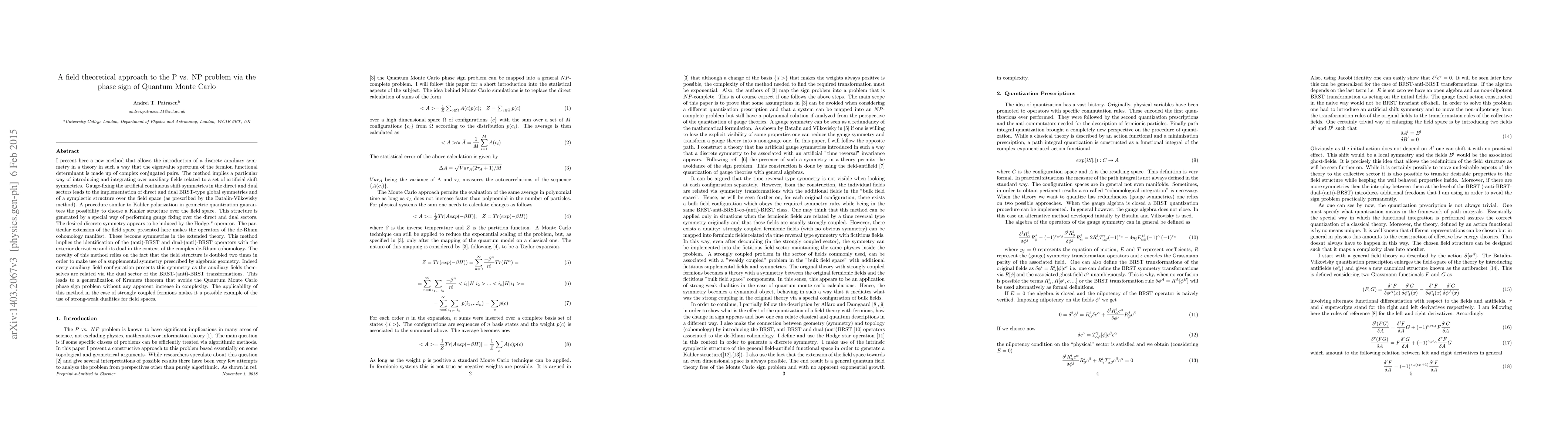 I present here a new method that allows the introduction of a discrete auxiliary symmetry in a theory in such a way that the eigenvalue spectrum of the fermion functional determinant is made up of complex conjugated pairs. The method implies a particular way of introducing and integrating over auxiliary fields related to a set of artificial shift symmetries. Gauge-fixing the artificial continuous shift symmetries in the direct and dual sectors leads to the implementation of direct and dual BRST-type global symmetries and of a symplectic structure over the field space (as prescribed by the Batalin-Vilkovisky method). A procedure similar to Kahler polarization in geometric quantization guarantees the possibility to choose a Kahler structure over the field space. This structure is generated by a special way of performing gauge fixing over the direct and dual sectors. The desired discrete symmetry appears to be induced by the Hodge-* operator. The particular extension of the field space presented here makes the operators of the de-Rham cohomology manifest. These become symmetries in the extended theory. This method implies the identification of the (anti)-BRST and dual-(anti)-BRST operators with the exterior derivative and its dual in the context of the complex de-Rham cohomology.