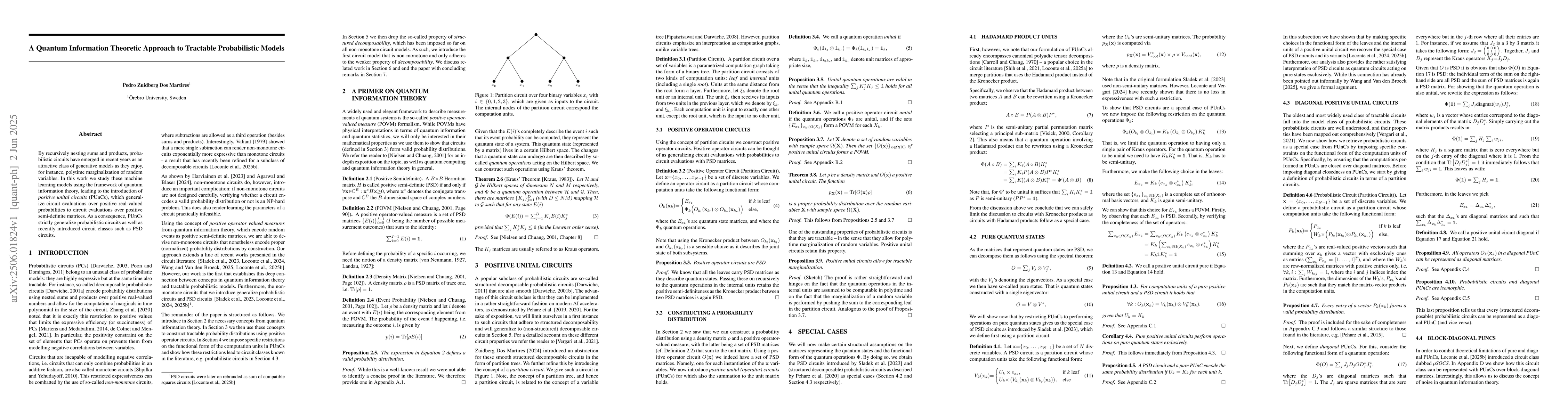 This research introduces Positive Unital Circuits (PUnCs), a generalization of probabilistic circuits using quantum information theory. PUnCs handle positive semi-definite matrices, surpassing the capabilities of probabilistic circuits and recent PSD circuits in terms of generality and tractability.