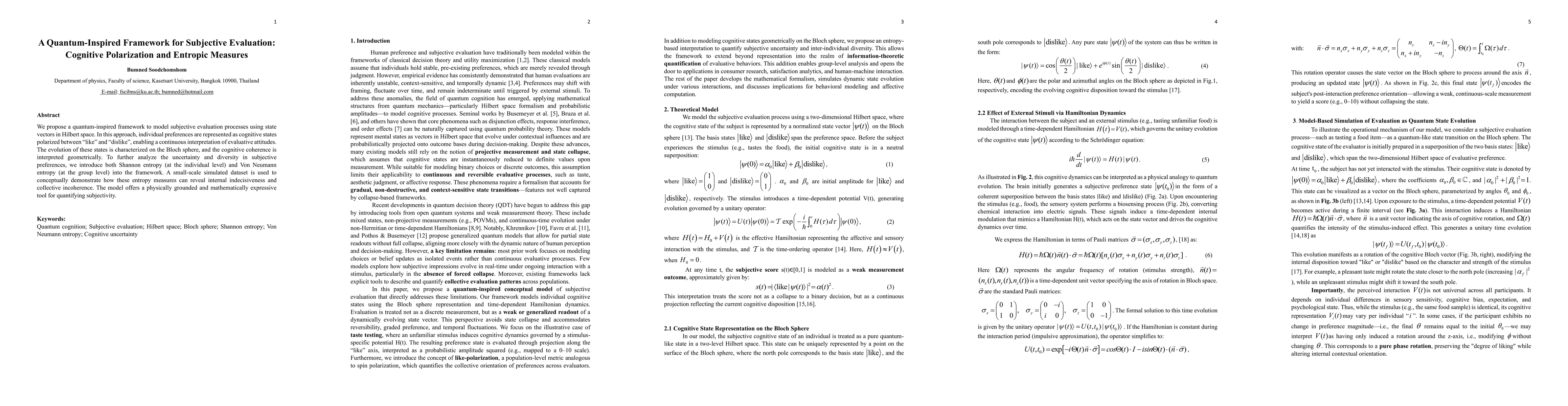 The development of a novel quantum-inspired model for cognitive evaluation and its potential applications in decision-making and human-computer interaction.