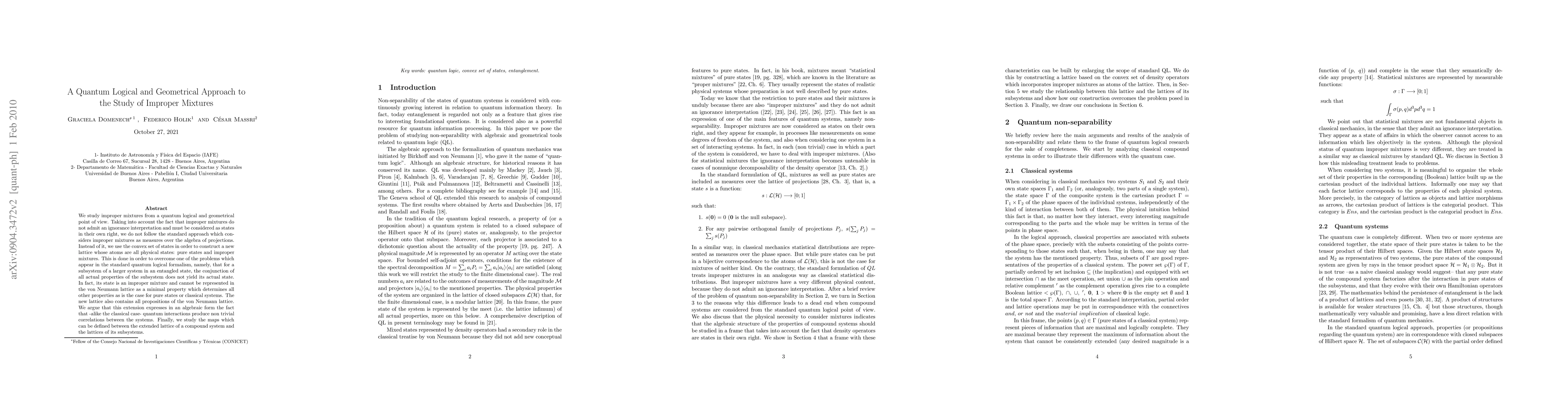 We study improper mixtures from a quantum logical and geometrical point of view. Taking into account the fact that improper mixtures do not admit an ignorance interpretation and must be considered as states in their own right, we do not follow the standard approach which considers improper mixtures as measures over the algebra of projections. Instead of it, we use the convex set of states in order to construct a new lattice whose atoms are all physical states: pure states and improper mixtures. This is done in order to overcome one of the problems which appear in the standard quantum logical formalism, namely, that for a subsystem of a larger system in an entangled state, the conjunction of all actual properties of the subsystem does not yield its actual state. In fact, its state is an improper mixture and cannot be represented in the von Neumann lattice as a minimal property which determines all other properties as is the case for pure states or classical systems. The new lattice also contains all propositions of the von Neumann lattice. We argue that this extension expresses in an algebraic form the fact that -alike the classical case- quantum interactions produce non trivial correlations between the systems. Finally, we study the maps which can be defined between the extended lattice of a compound system and the lattices of its subsystems.