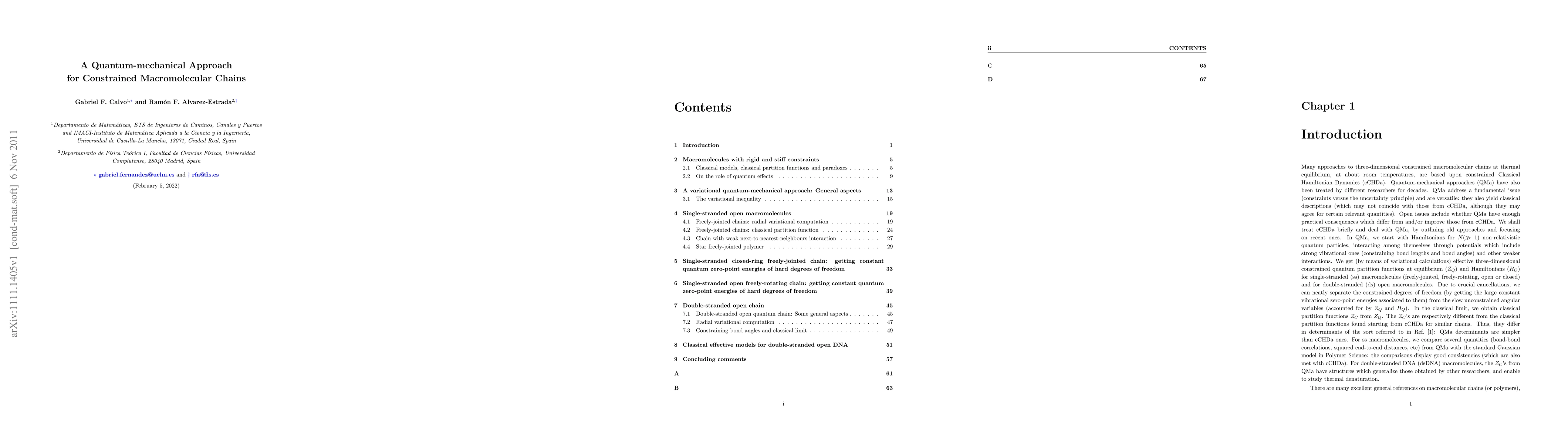This paper explores quantum-mechanical approaches for modeling 3D constrained macromolecular chains, offering a more accurate description of their behavior than classical methods at room temperature. It focuses on recent methodologies that address long-standing open issues in the field.
