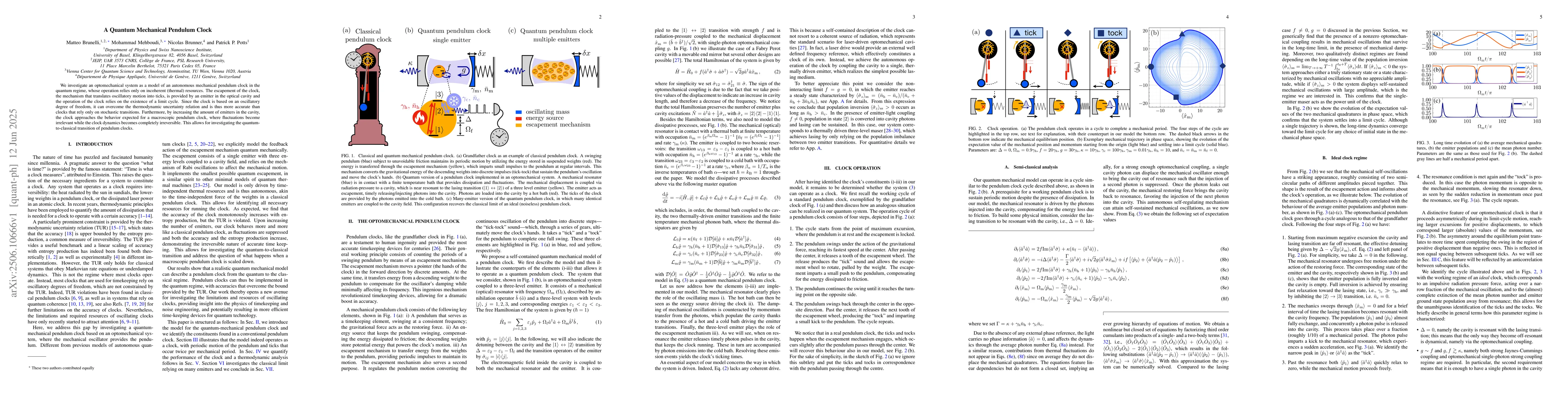 Researchers have developed a quantum mechanical pendulum clock that uses thermal resources to achieve higher accuracy than traditional clocks. By studying this system, they were able to investigate the quantum-to-classical transition of pendulum clocks.