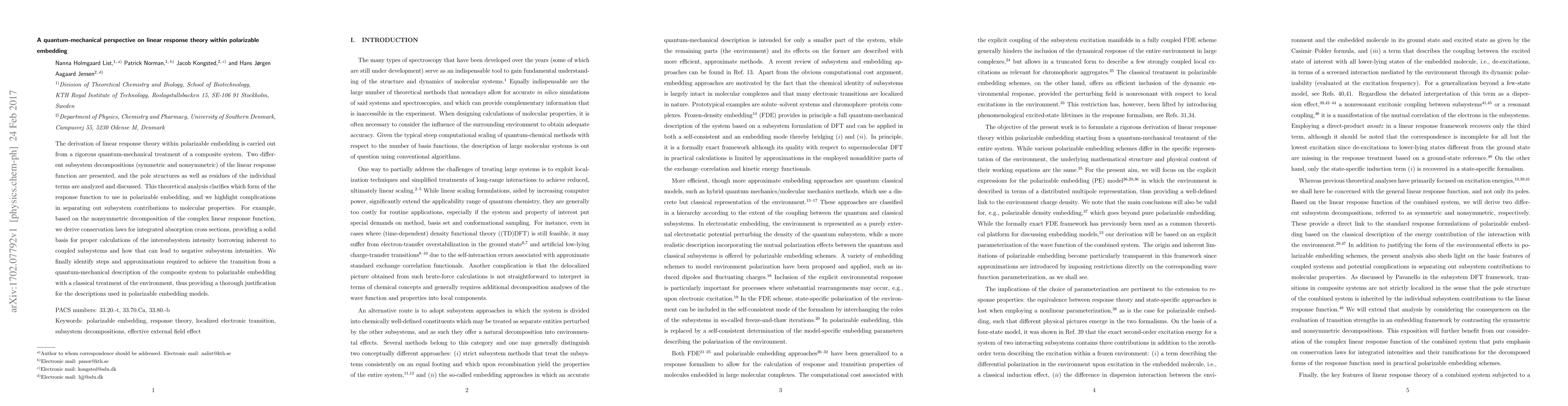 Peter Reinholdt, Sonia Coriani, Henrik Koch et al.