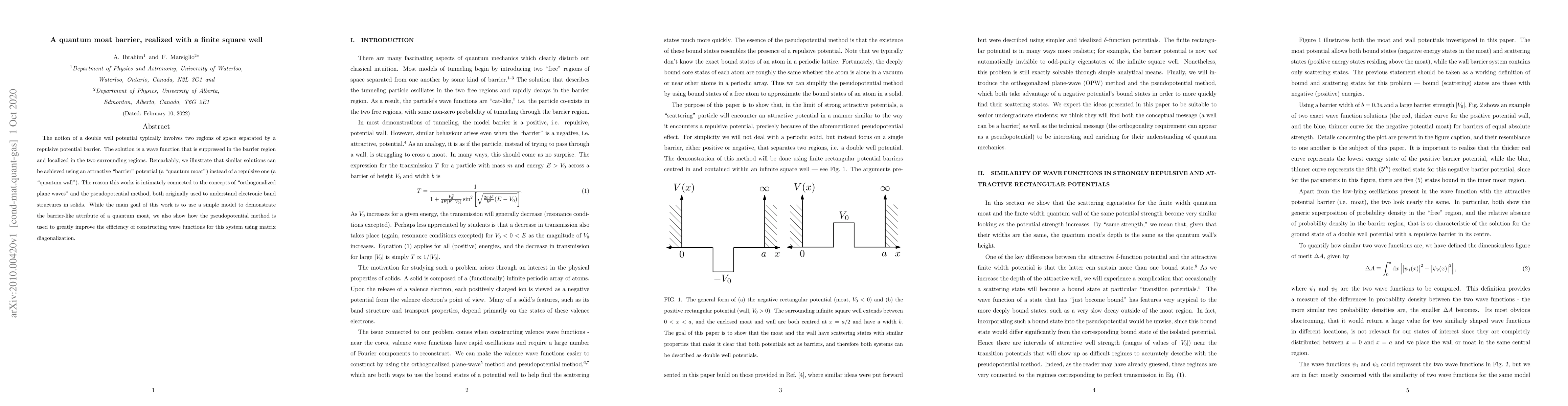 The notion of a double well potential typically involves two regions of space separated by a repulsive potential barrier. The solution is a wave function that is suppressed in the barrier region and localized in the two surrounding regions. Remarkably, we illustrate that similar solutions can be achieved using an attractive "barrier" potential (a "quantum moat") instead of a repulsive one (a "quantum wall"). The reason this works is intimately connected to the concepts of "orthogonalized plane waves" and the pseudopotential method, both originally used to understand electronic band structures in solids. While the main goal of this work is to use a simple model to demonstrate the barrier-like attribute of a quantum moat, we also show how the pseudopotential method is used to greatly improve the efficiency of constructing wave functions for this system using matrix diagonalization.