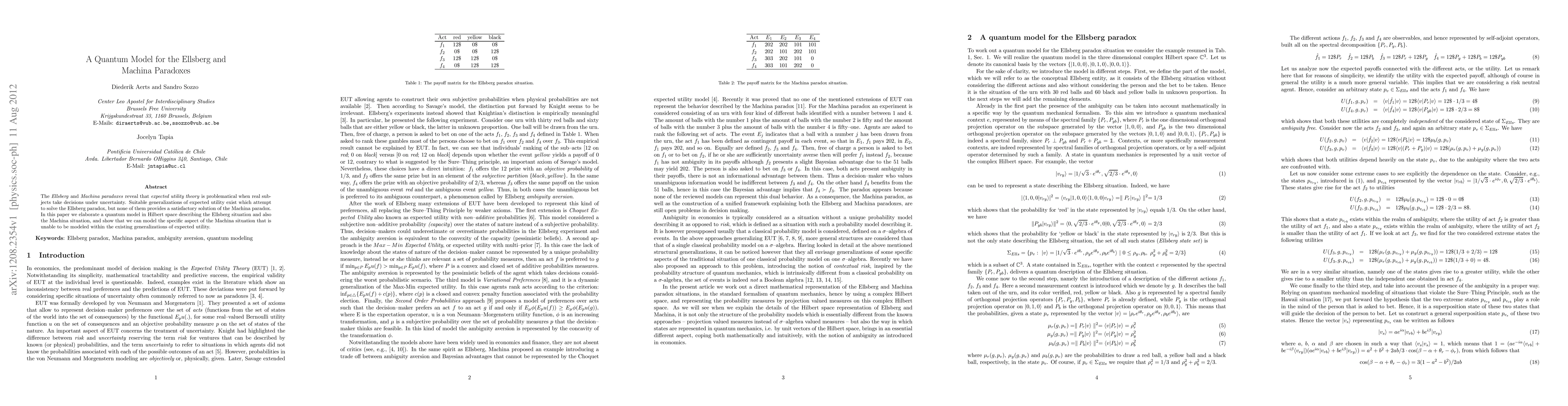 The Ellsberg and Machina paradoxes reveal that expected utility theory is problematical when real subjects take decisions under uncertainty. Suitable generalizations of expected utility exist which attempt to solve the Ellsberg paradox, but none of them provides a satisfactory solution of the Machina paradox. In this paper we elaborate a quantum model in Hilbert space describing the Ellsberg situation and also the Machina situation, and show that we can model the specific aspect of the Machina situation that is unable to be modeled within the existing generalizations of expected utility.