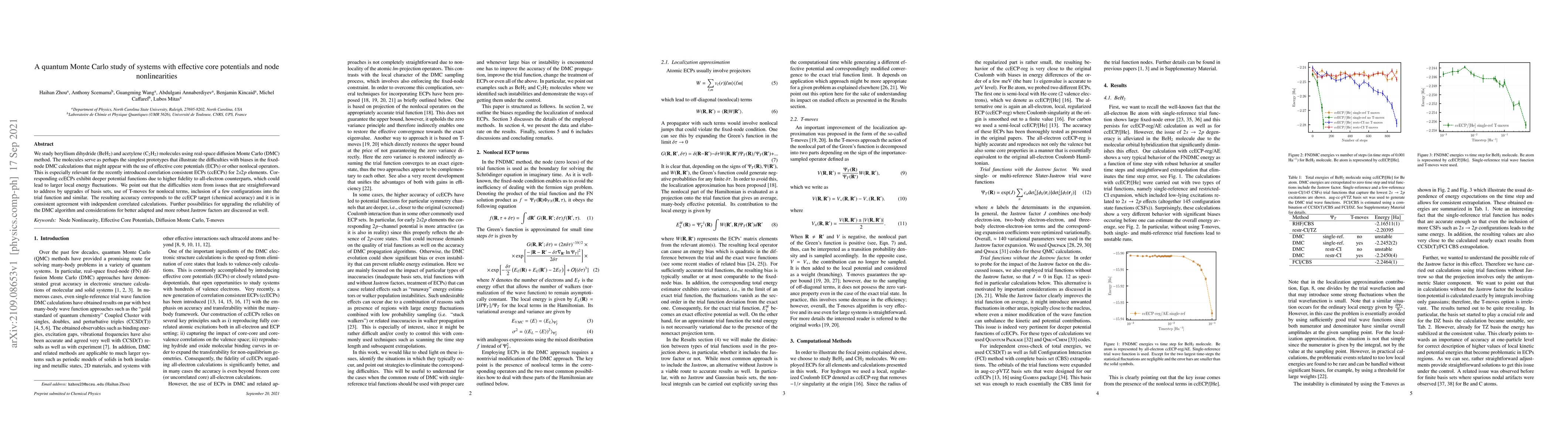 This paper employs quantum Monte Carlo methods to study beryllium dihydride and acetylene molecules, highlighting challenges in fixed-node diffusion Monte Carlo calculations due to effective core potentials and node nonlinearities. The study proposes solutions to improve accuracy and reliability, achieving chemical accuracy and consistency with independent calculations.