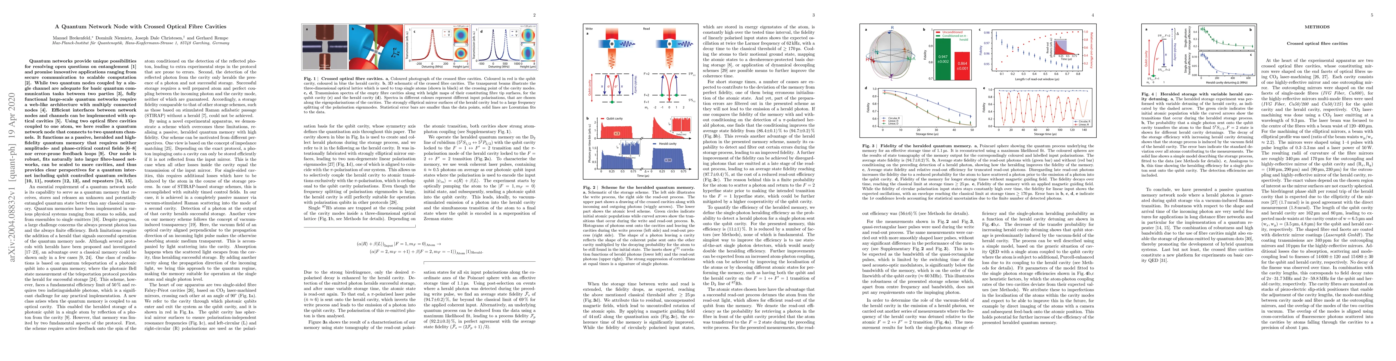 This paper presents a quantum network node utilizing crossed optical fibre cavities and a single atom to connect two quantum channels. The node serves as a high-fidelity, passive quantum memory, offering robustness and scalability for future quantum internet applications.