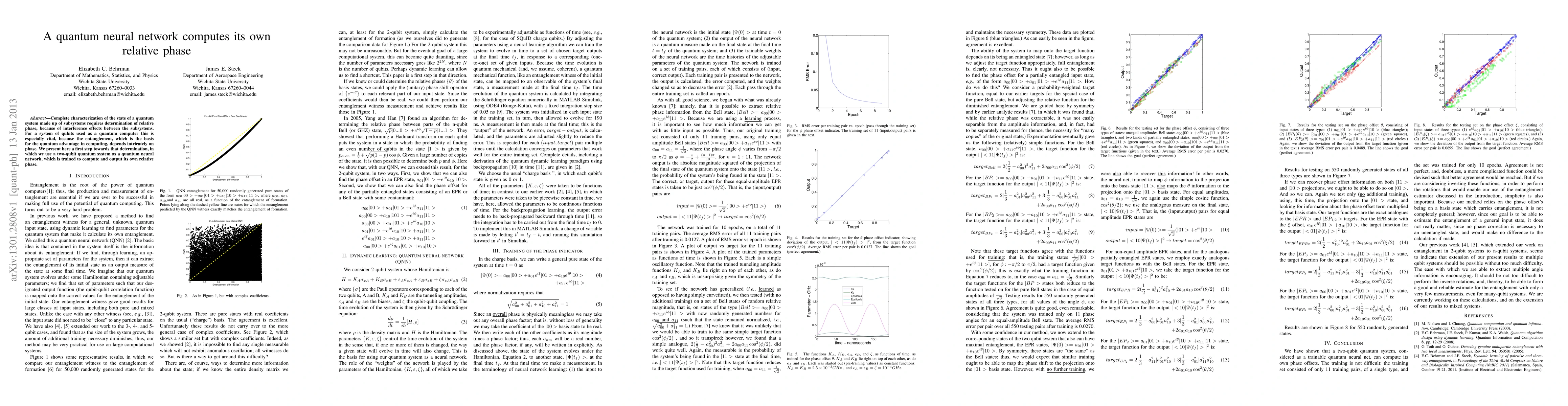 This paper introduces a quantum neural network composed of two qubits trained to determine and output its own relative phase, a crucial aspect for characterizing quantum states and enhancing quantum computing capabilities. The approach marks a significant step towards fully understanding and utilizing quantum entanglement for computational advantages.