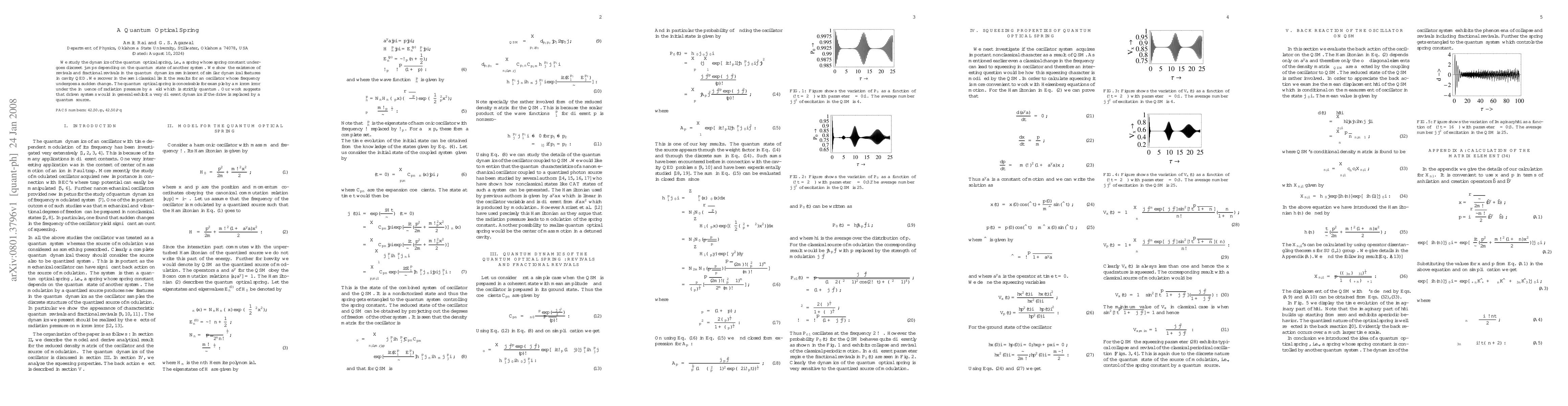 This paper investigates the dynamics of a quantum optical spring, where the spring constant changes based on the quantum state of another system, revealing revivals and fractional revivals in its quantum dynamics. The study suggests that driven quantum systems exhibit distinct dynamics when driven by a quantum source instead of classical means.