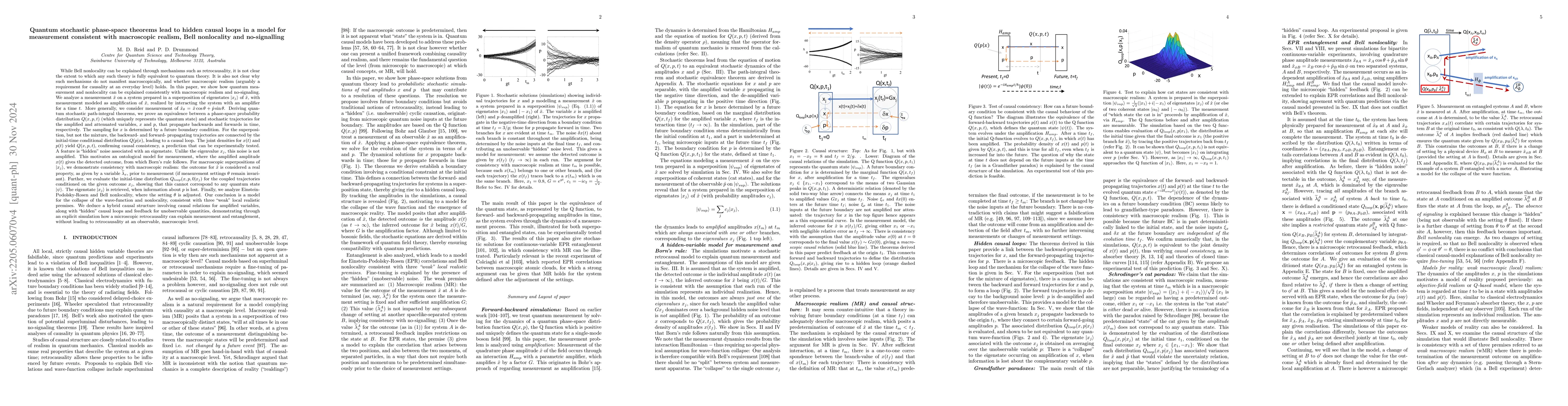 We show how unobservable causal loops arise from quantum mechanics, and can explain quantum measurement consistently with macroscopic realism. We analyze a measurement $\hat{x}$ on a system prepared in a superposition of eigenstates $|x_{j}\rangle$ where the measurement is modeled by amplification. We prove an equivalence between the positive phase-space distribution $Q(x,p,t)$, and simultaneous backward and forward-propagating stochastic trajectories for amplitudes $x$ and $p$. The sampling for the amplified variable $x$ is specified by a future boundary condition determined by the measurement setting, the backward and forward trajectories being linked at the initial-time boundary to form a loop. We confirm that the joint densities for $x(t)$ and $p(t)$ yield $Q(x,p,t)$, thus demonstrating causal consistency and Born's rule. A feature is hidden vacuum noise associated with an eigenstate. Unlike the eigenvalue $x_{j}$, this noise is not amplified, the fluctuations originating from future boundary conditions. For macroscopic superpositions of $|x_{j}\rangle$, we show consistency with macroscopic realism: the outcome for $\hat{x}$ can be considered a real property at the time $t_{0}$ prior to measurement (independent of future events). We deduce a hybrid causal structure involving causal relations for amplified variables, along with hidden causal loops for unamplified quantities, demonstrating that causal loops do not imply (observable) retrocausality. Further, we evaluate $Q_{j}(x,p,0)$ for the trajectories conditioned on the outcome $x_{j}$. The ``state'' defined by this function cannot be a quantum state, the uncertainties for $\hat{x}$ and $\hat{p}$ being too small. However, $Q_{j}(x,p,0)$ approaches that of $|x_{j}\rangle$ for a macroscopic superposition. Our results provide a framework for study of Einstein-Podolsky-Rosen and Bell correlations.