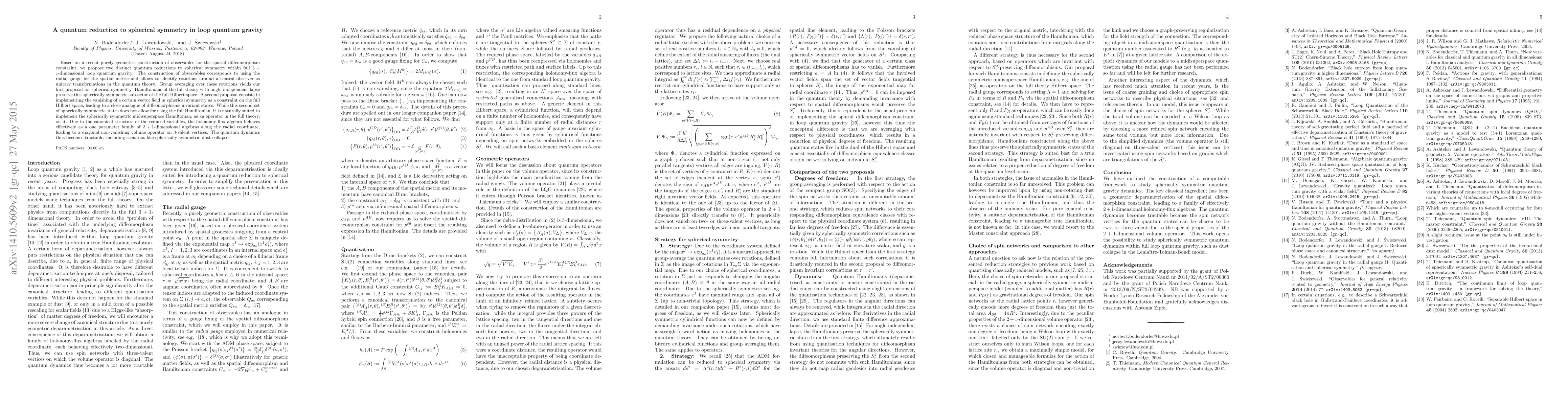 This paper proposes two quantum reductions to spherical symmetry in loop quantum gravity, utilizing geometric constructions and radial gauges. The first reduction involves averaging over rotations, while the second implements a vector field constraint, both leading to tractable quantum dynamics.