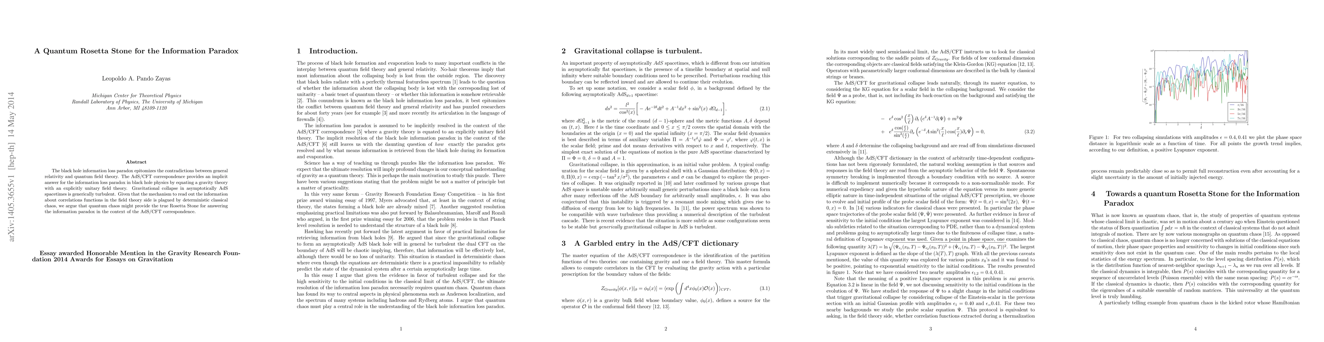The black hole information loss paradox epitomizes the contradictions between general relativity and quantum field theory. The AdS/CFT correspondence provides an implicit answer for the information loss paradox in black hole physics by equating a gravity theory with an explicitly unitary field theory. Gravitational collapse in asymptotically AdS spacetimes is generically turbulent. Given that the mechanism to read out the information about correlations functions in the field theory side is plagued by deterministic classical chaos, we argue that quantum chaos might provide the true Rosetta Stone for answering the information paradox in the context of the AdS/CFT correspondence.